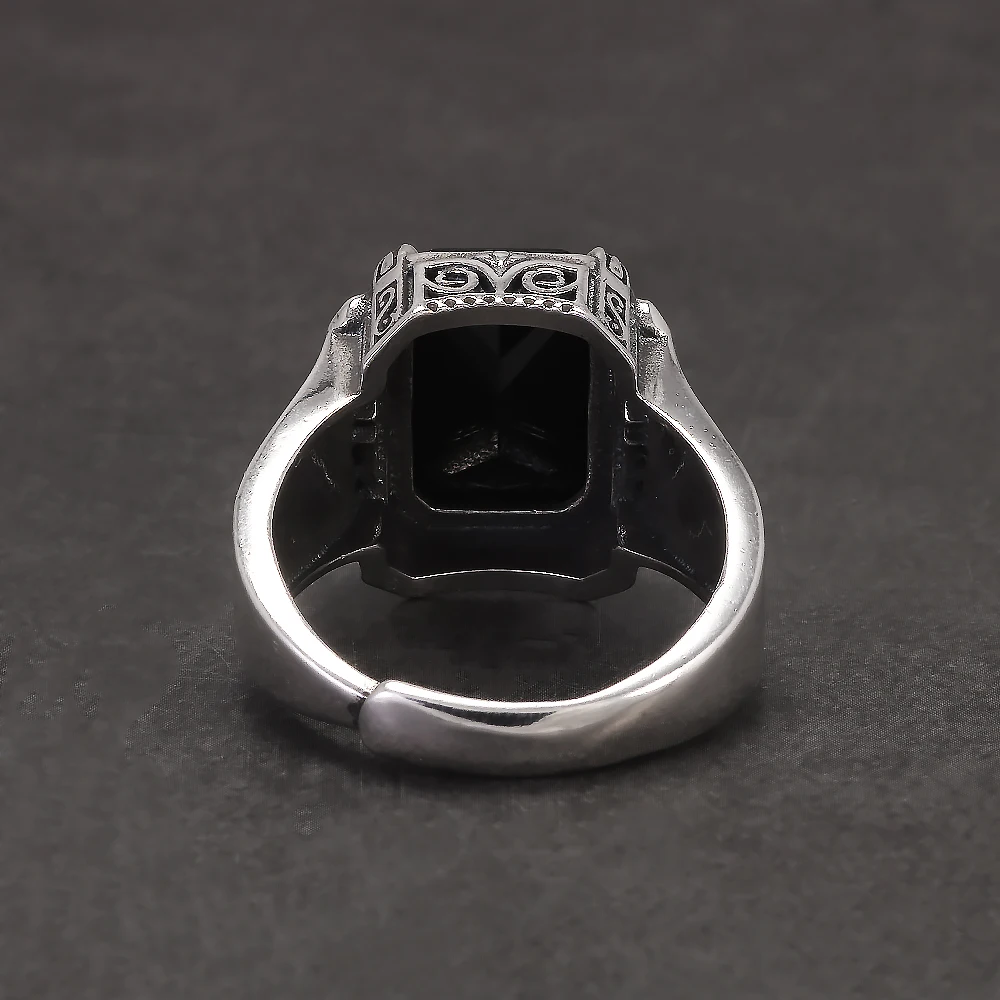 925 Sterling Silver Black Onyx Ring for Men Adjustable Vintage Retro Turkish Signet Ring Punk Cool Domineering Handmade Jewelry