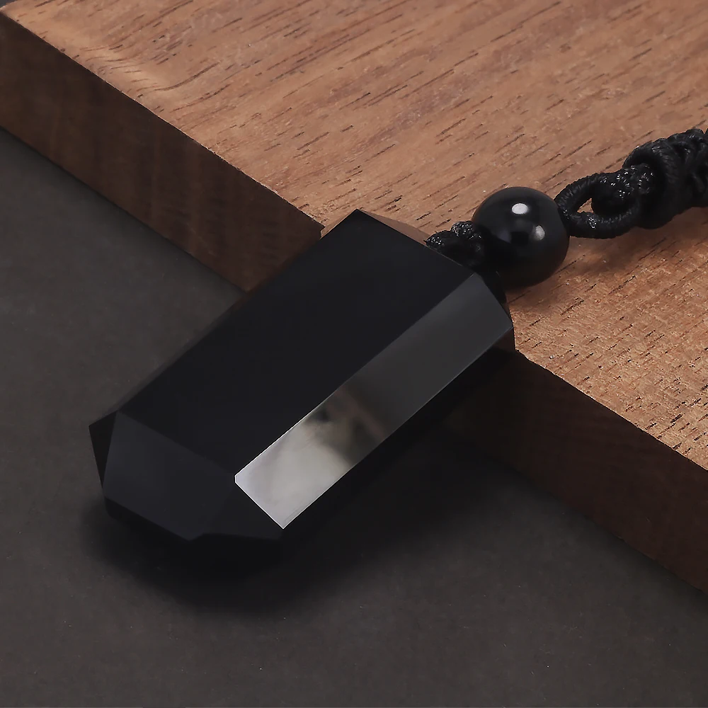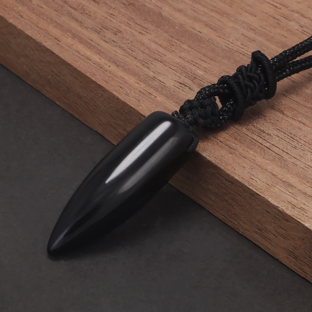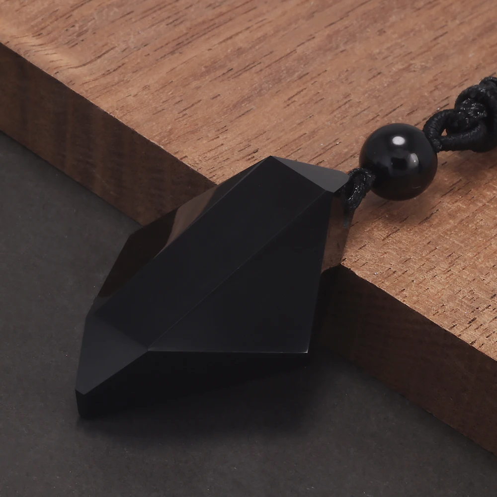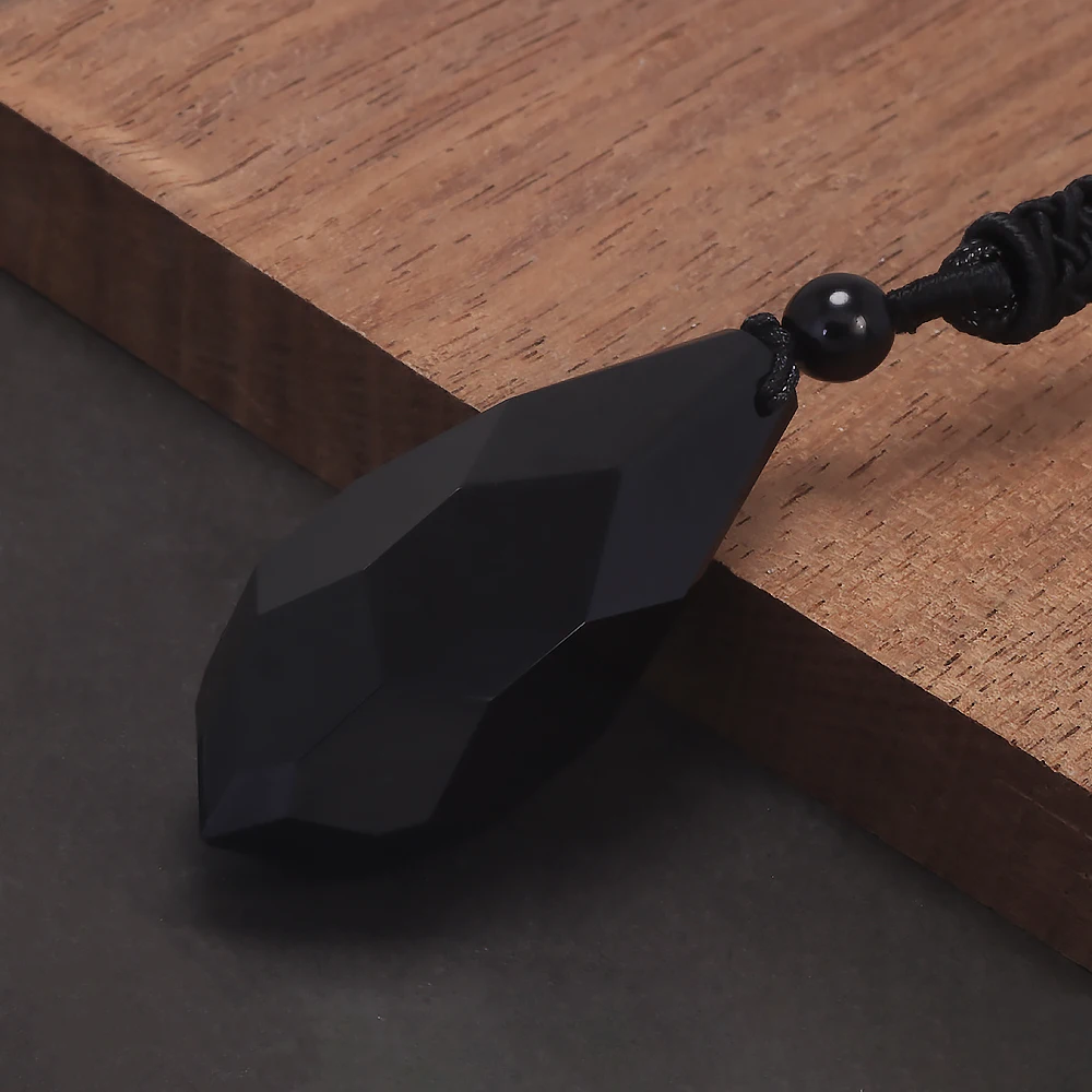 Natural Stone Geometric Pendant Necklace for Men Black Obsidian Blue Sandstone Adjusted Leather Rope Retro Vintage Jewelry
