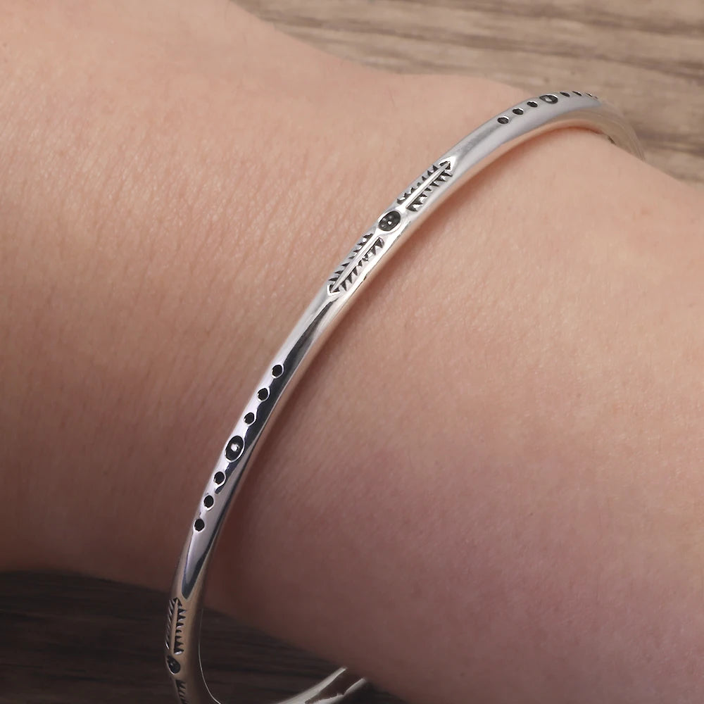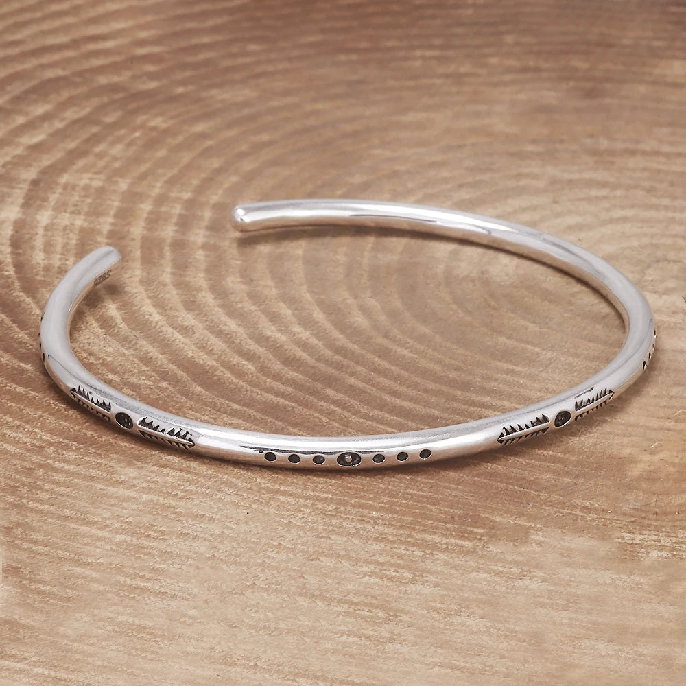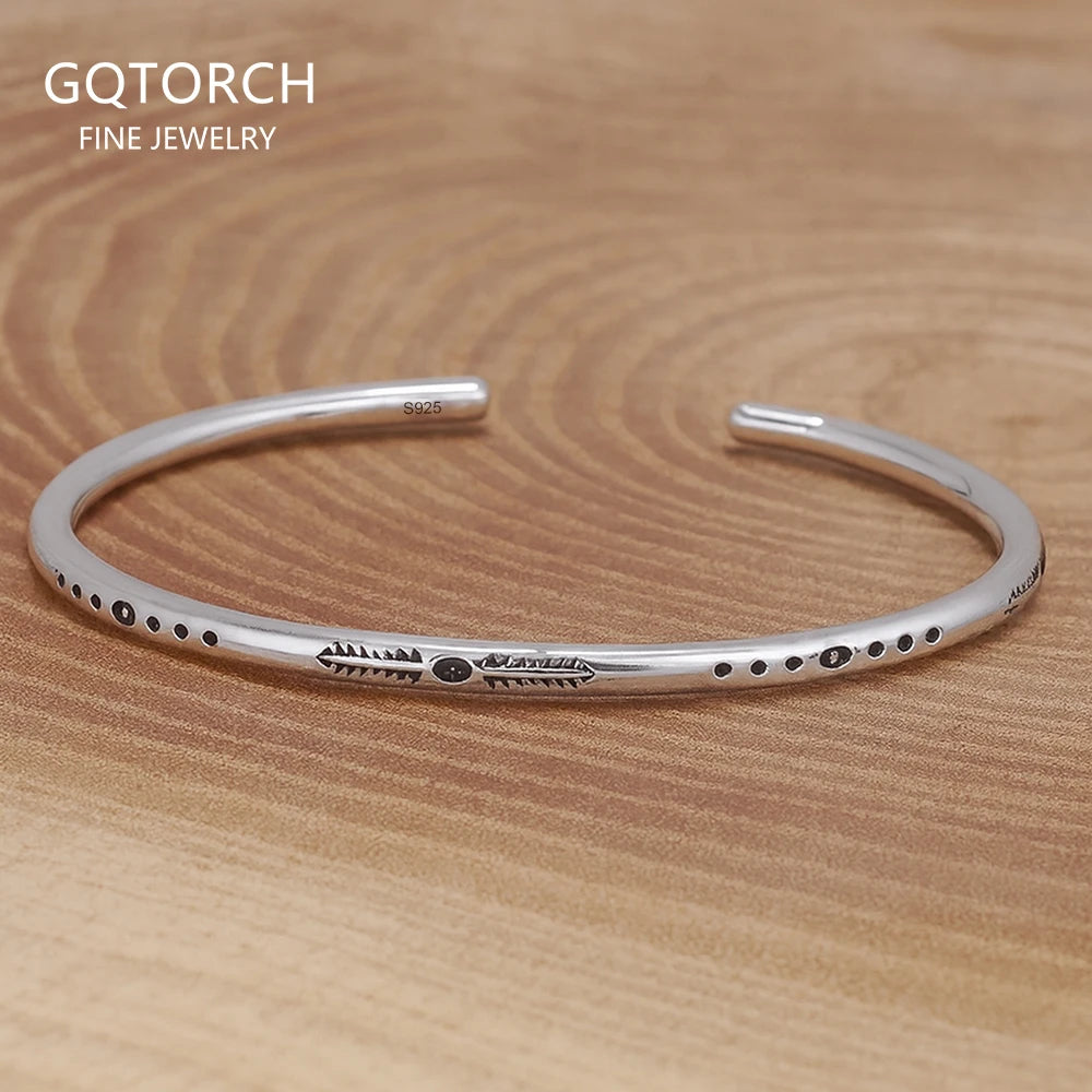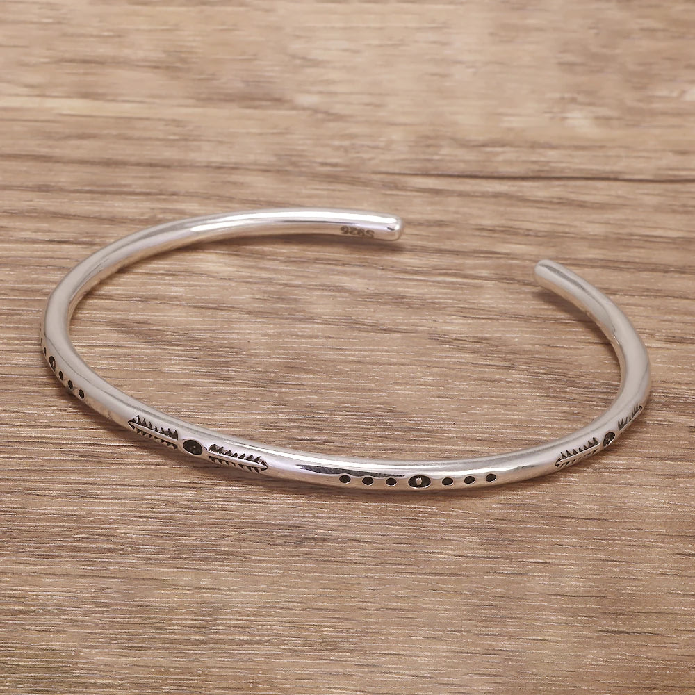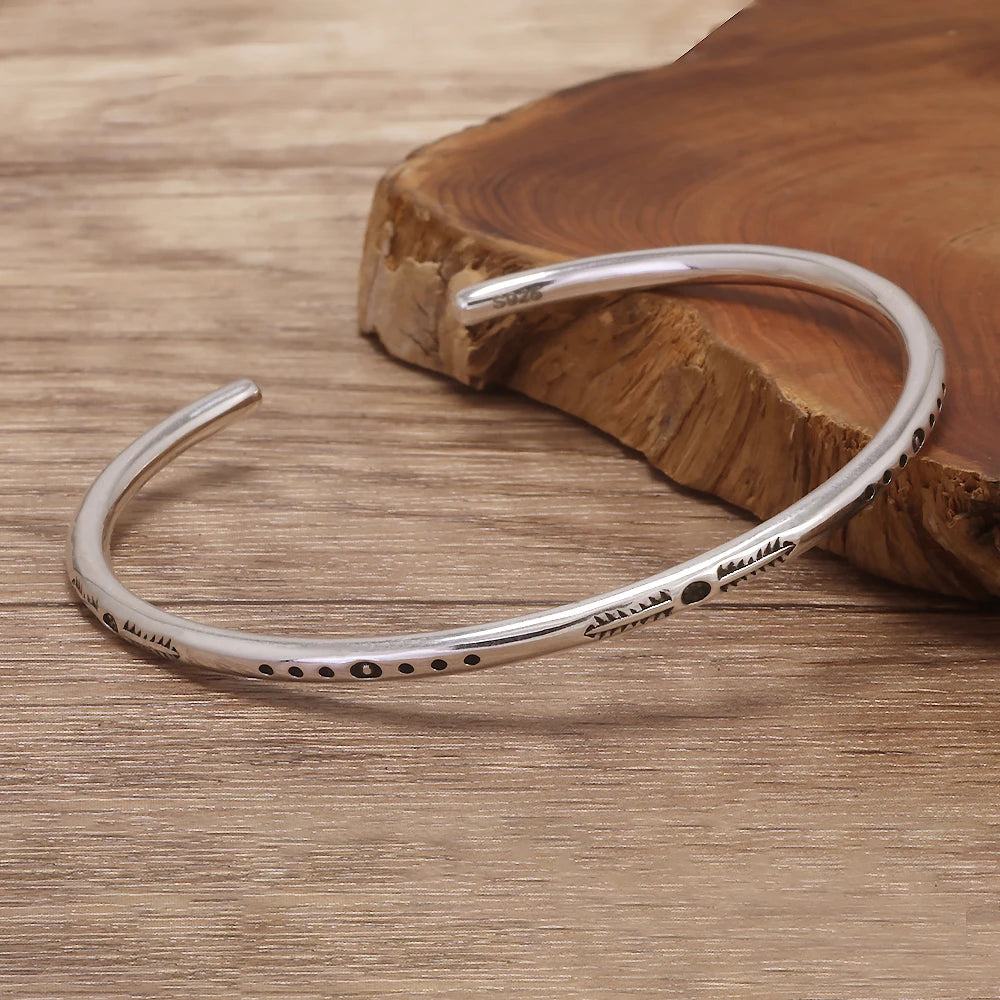925 Sterling Silver Feather 3mm Thin Cuff Bracelet for Women Men, Moon Star Design, Simple Retro Indian Jewelry Party Gift
