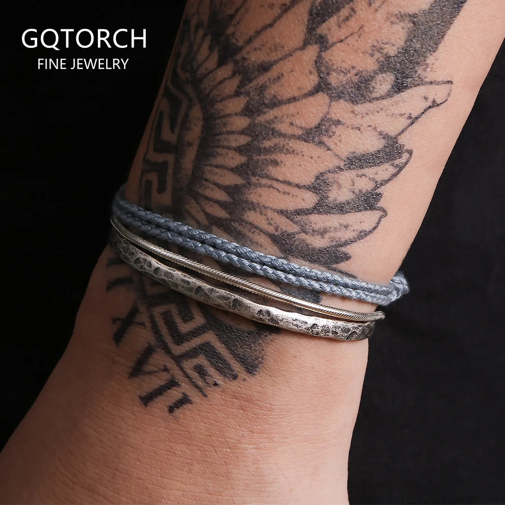 3pcs/set 925 Sterling Silver Hammered Open Cuff Bangle Handmade Knot Braided Rope Snake Chain Stack Bracelet Retro Jewelry