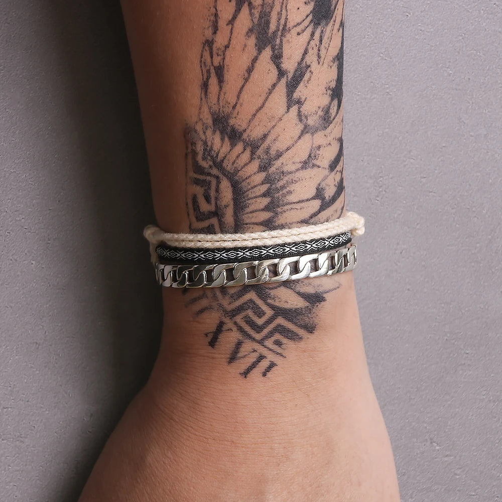3pcs/set 925 Sterling Silver Stackable Bracelet Hollow Woven Bangle Knot Rope Fashion Simple Classic Jewelry Gift for Men