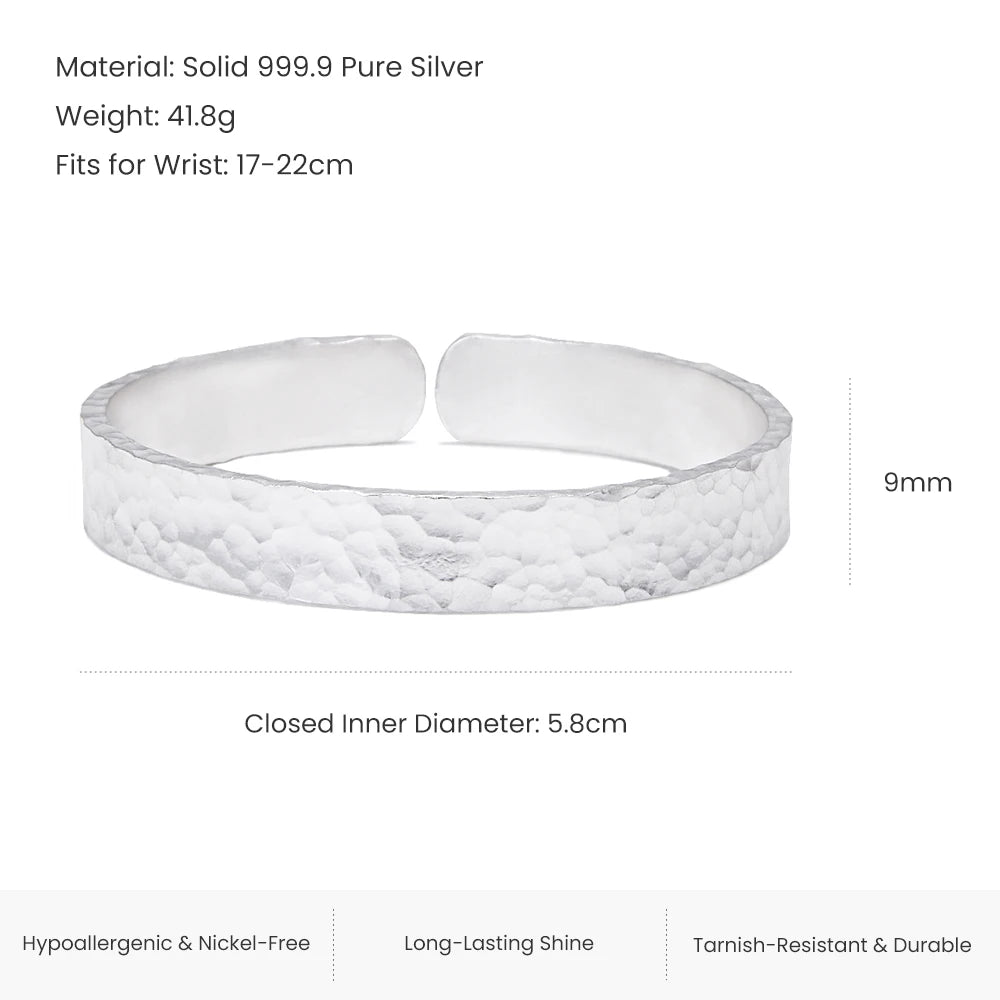 3pcs/set 999 Sterling Silver Stacked Cuff Bracelet Bangle 9mm Hammered Bracelet Knot Rope Adjustable Fashion Fine Jewelry