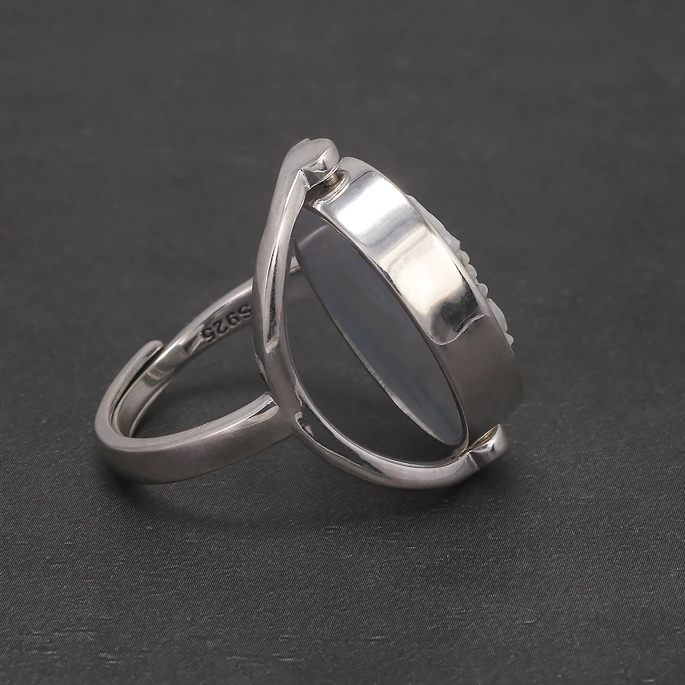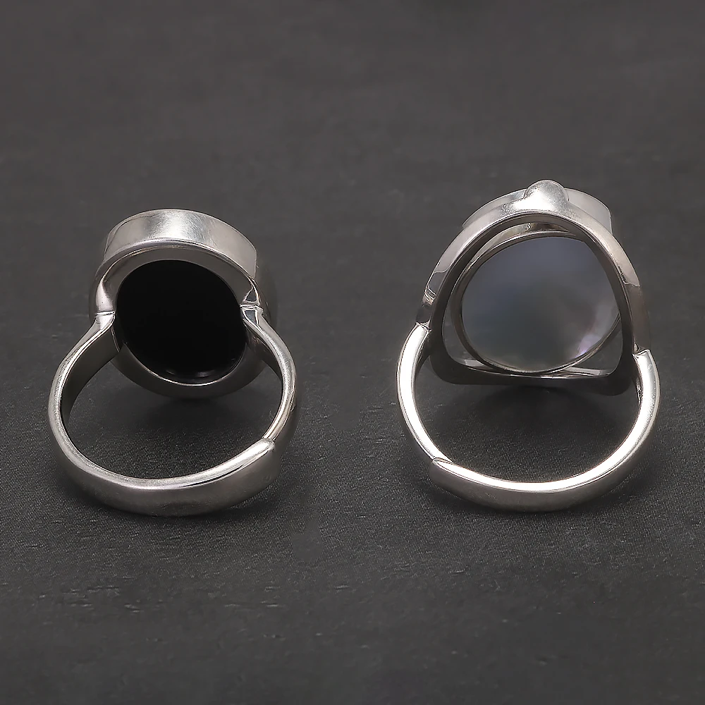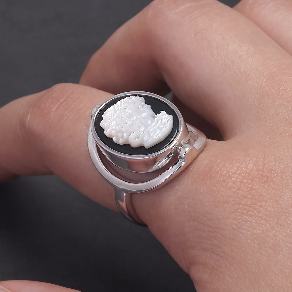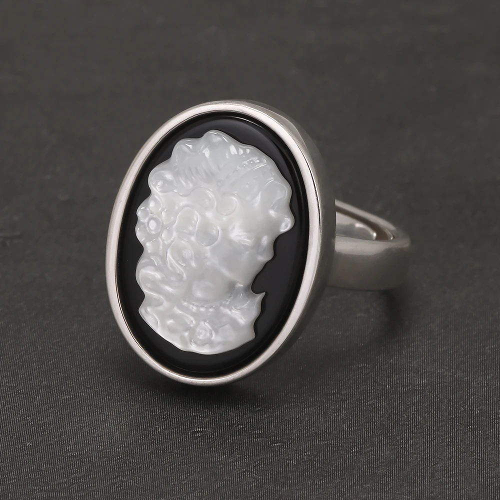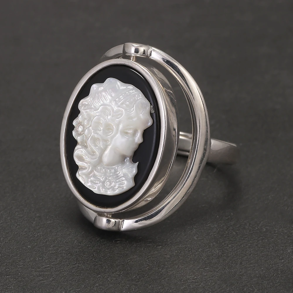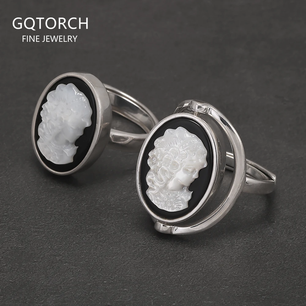 925 Sterling Silver Black Onyx Queen Cameo Ring for Women Double Sides Rotatable Rings Natural Shell Vintage Jewelry Adjustable
