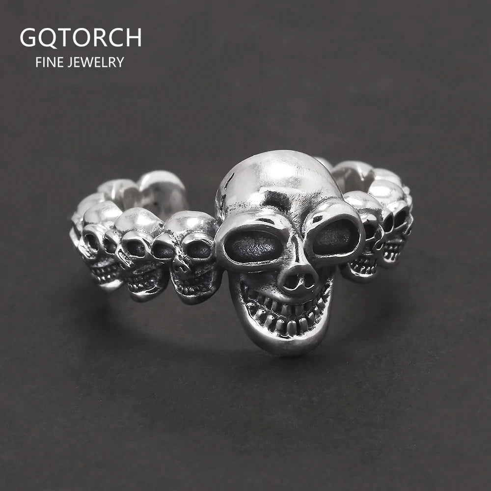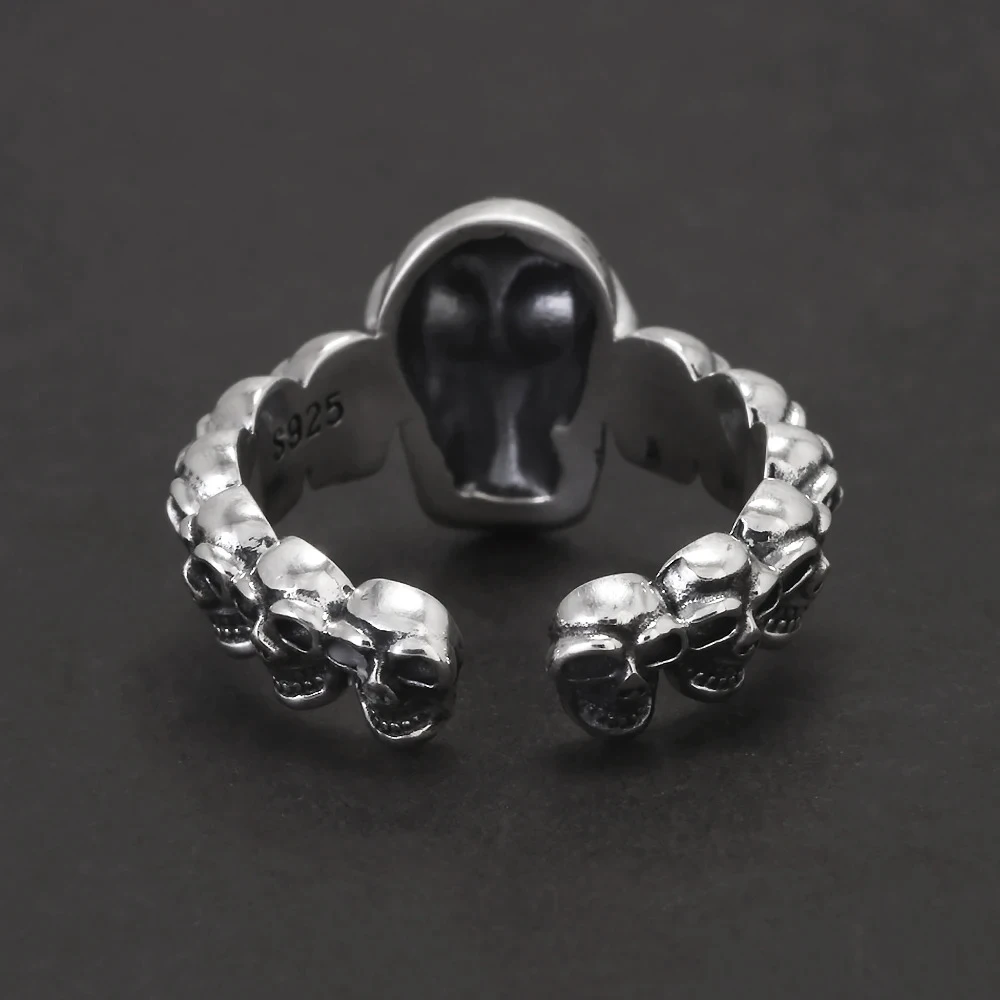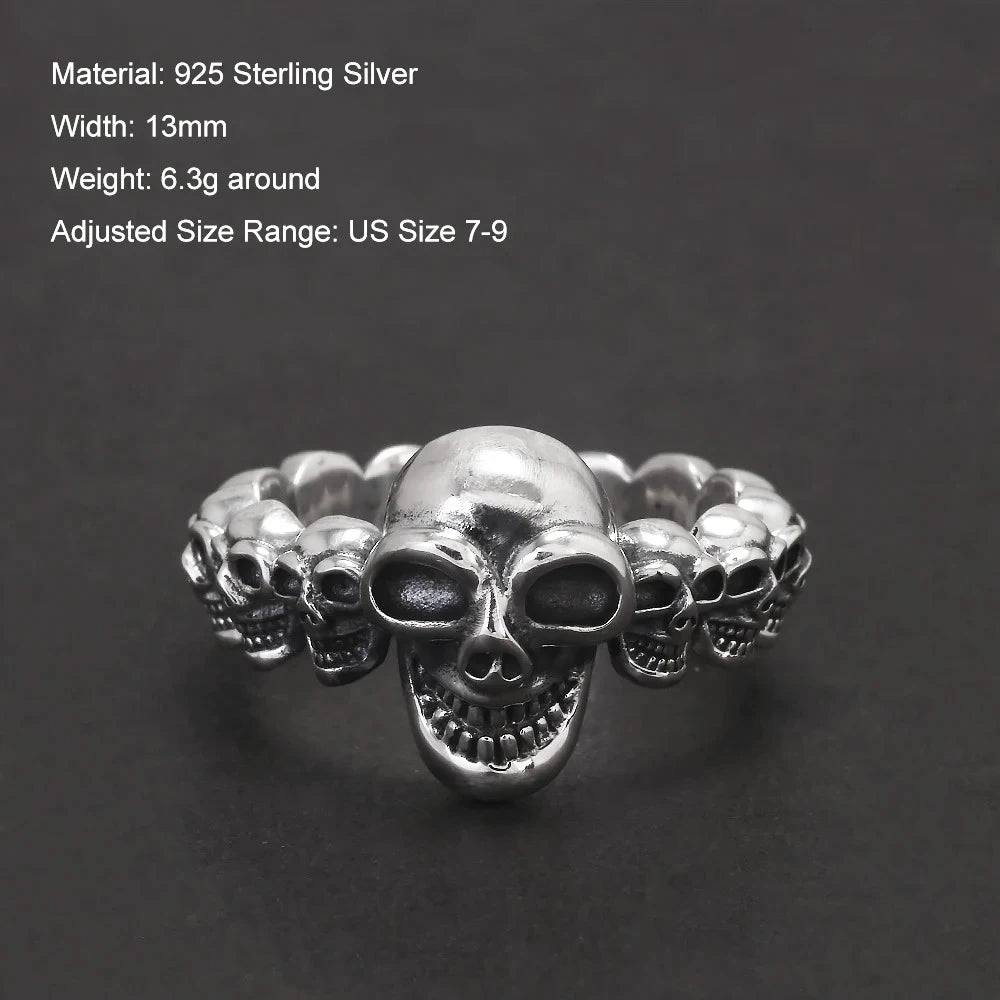 925 Sterling Silver Gothic Skull Ring Adjustable Death Head Open Ring Biker Punk Rock Hiphop Street Party Jewelry Accessories