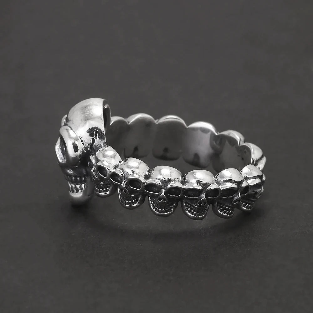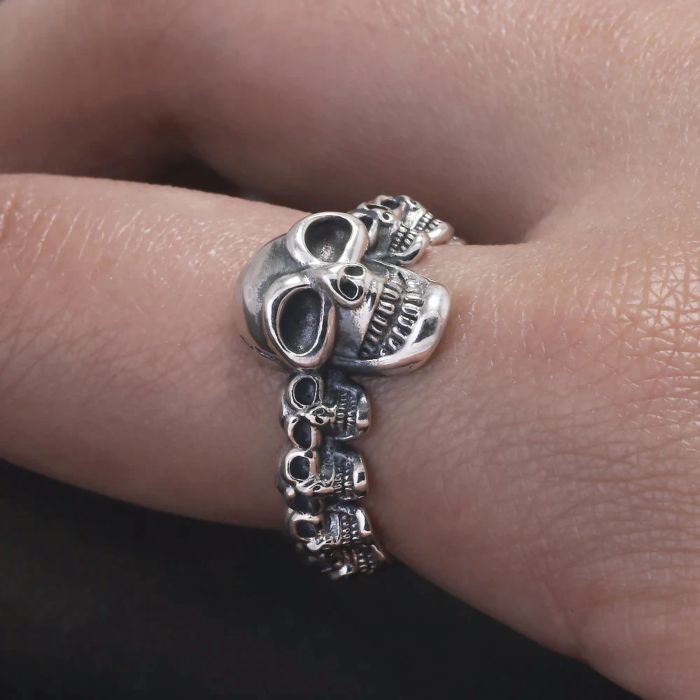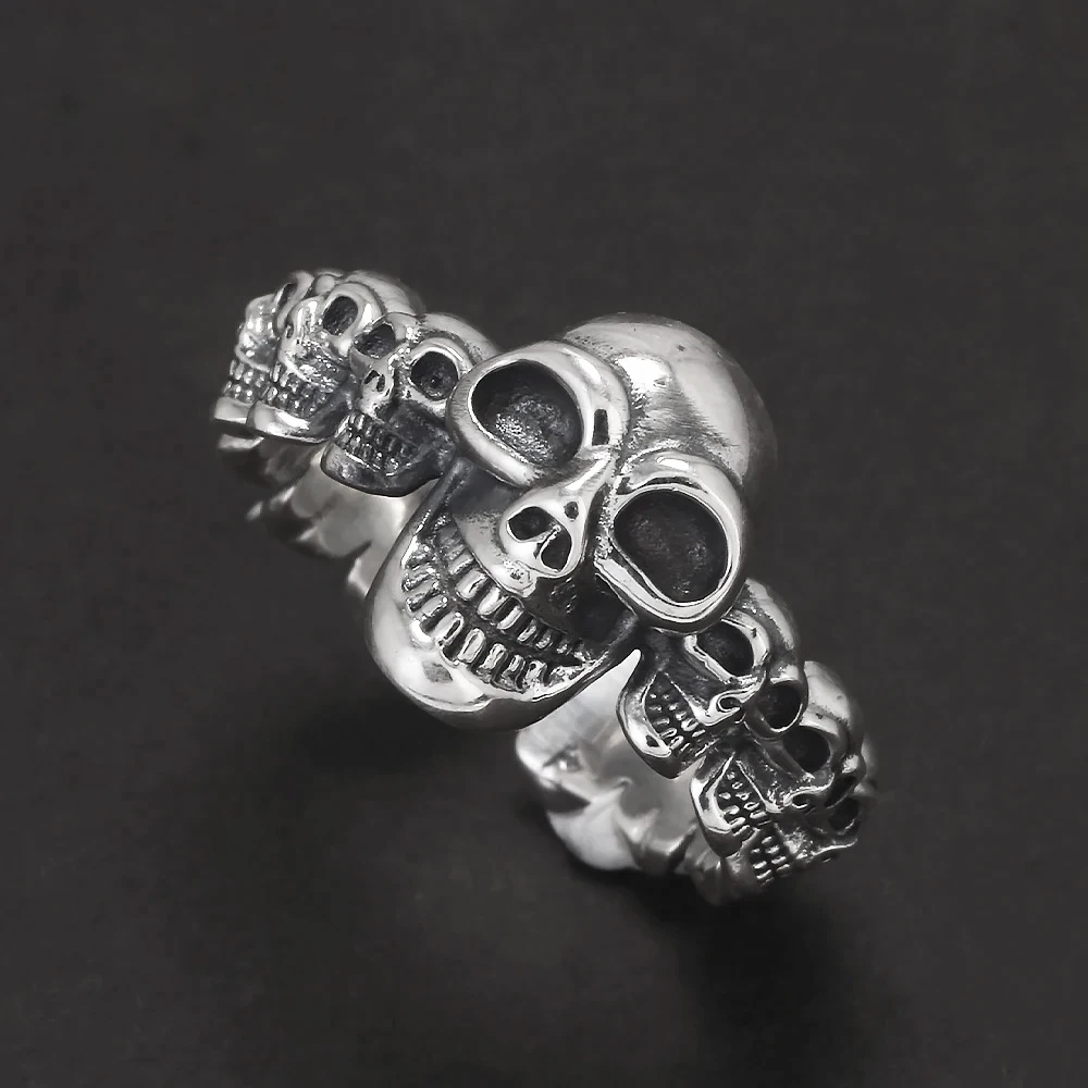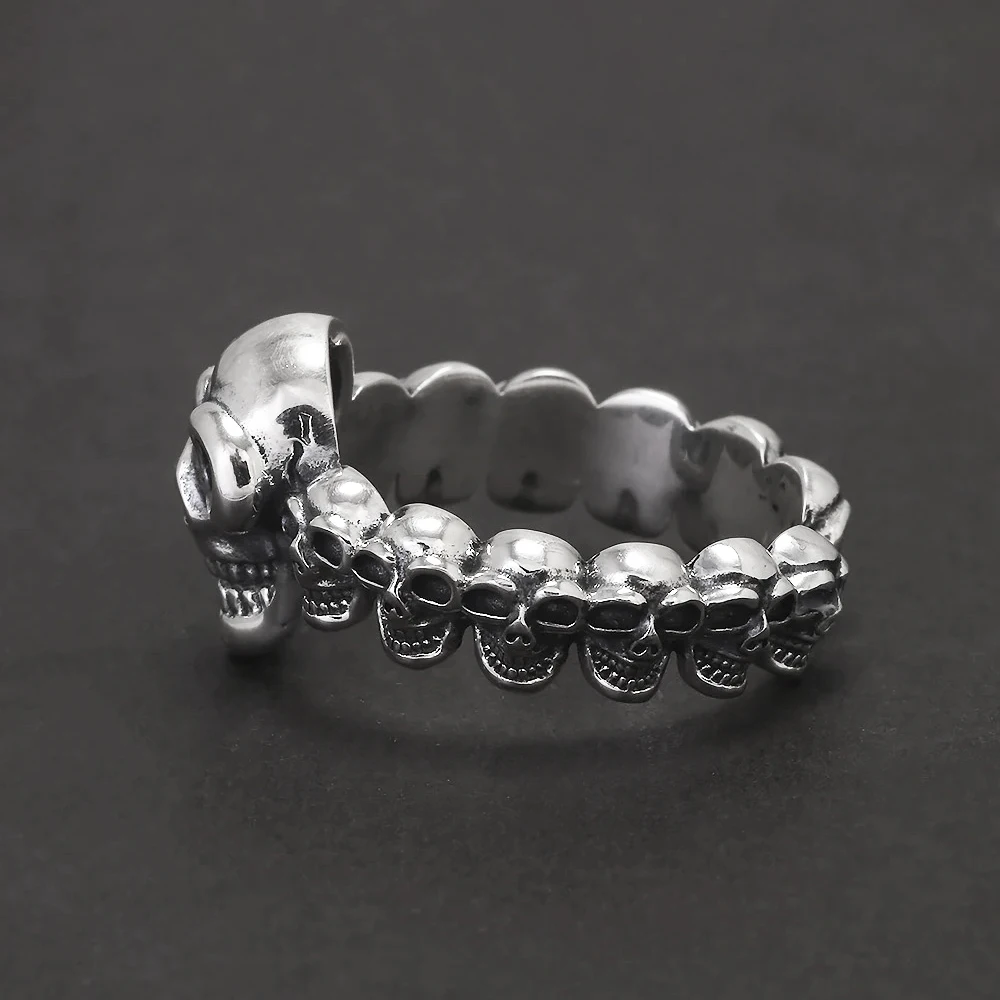 925 Sterling Silver Gothic Skull Ring Adjustable Death Head Open Ring Biker Punk Rock Hiphop Street Party Jewelry Accessories