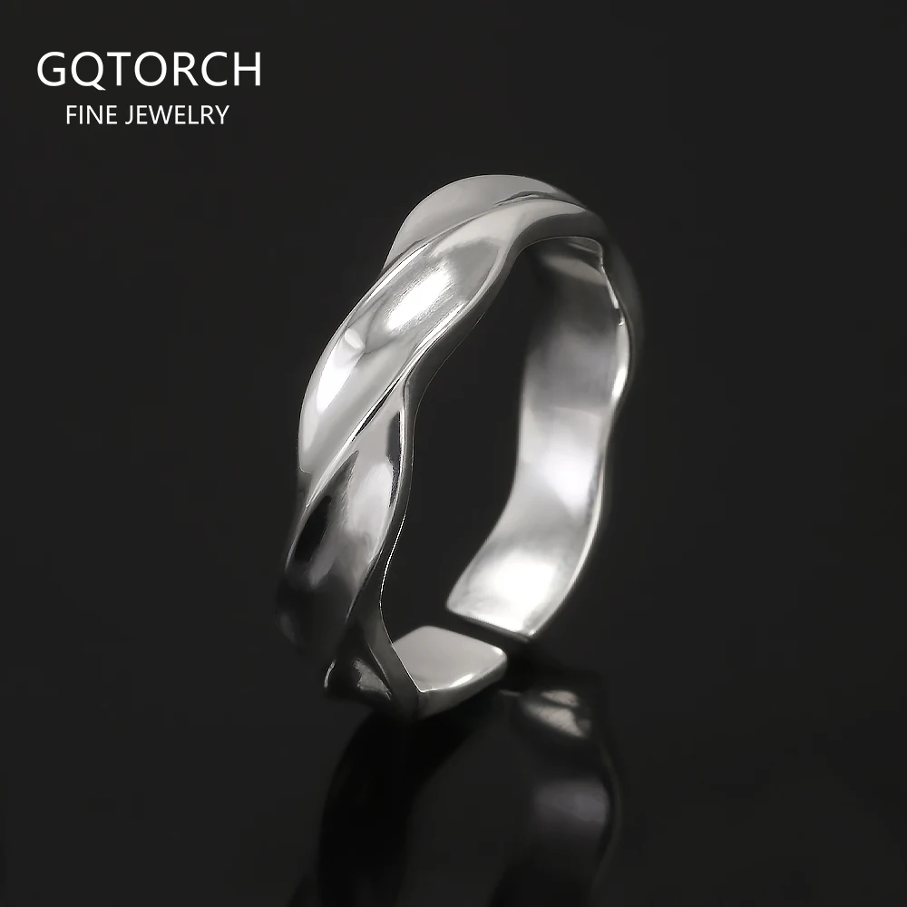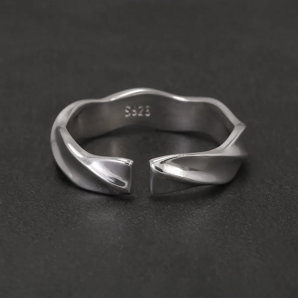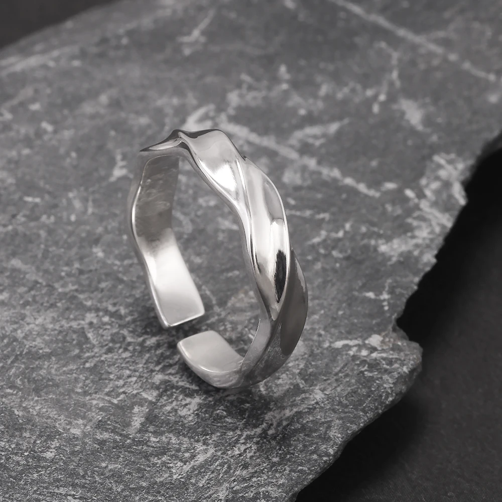 925 Sterling Silver Mobius Wave Ring for Women Men Opening Twisted Finger Band Simple Retro Trendy Party Jewelry Accessories