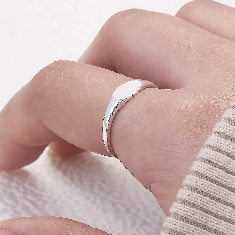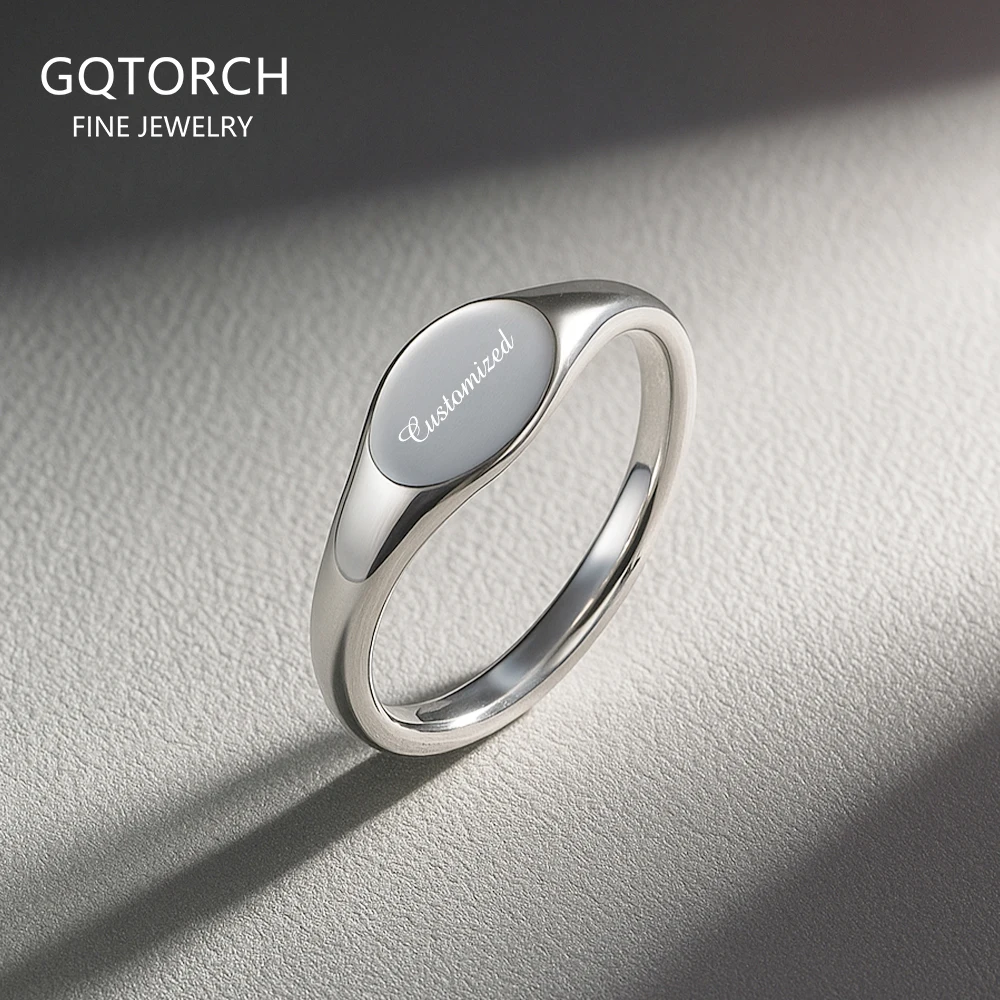 Real 925 Sterling Silver Custom Engraved Signet Ring for Women Men Minimalist Pinky Thumb Ring Elegant Personalized Jewelry Gift