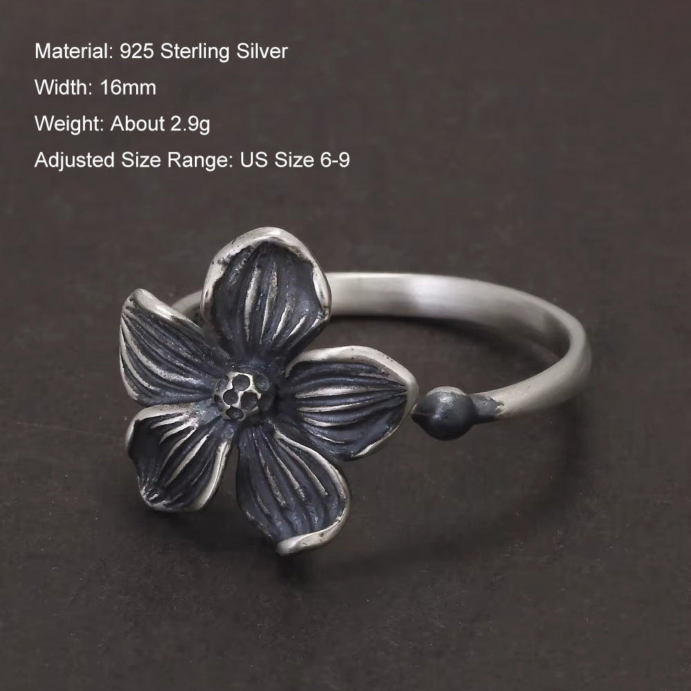 925 Sterling Silver Vintage Sakura Ring for Women Thai Silver Cherry Blossom Open Rings New Fashion Handmade Jewelry