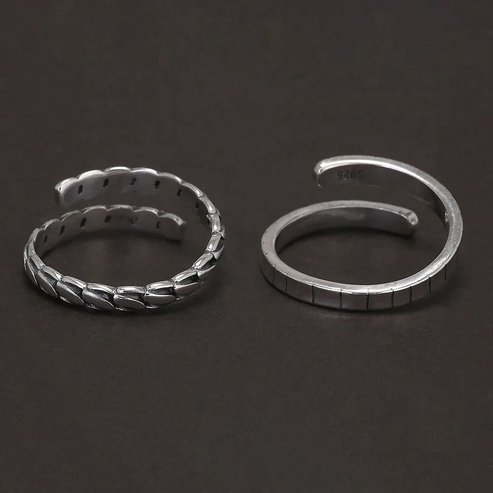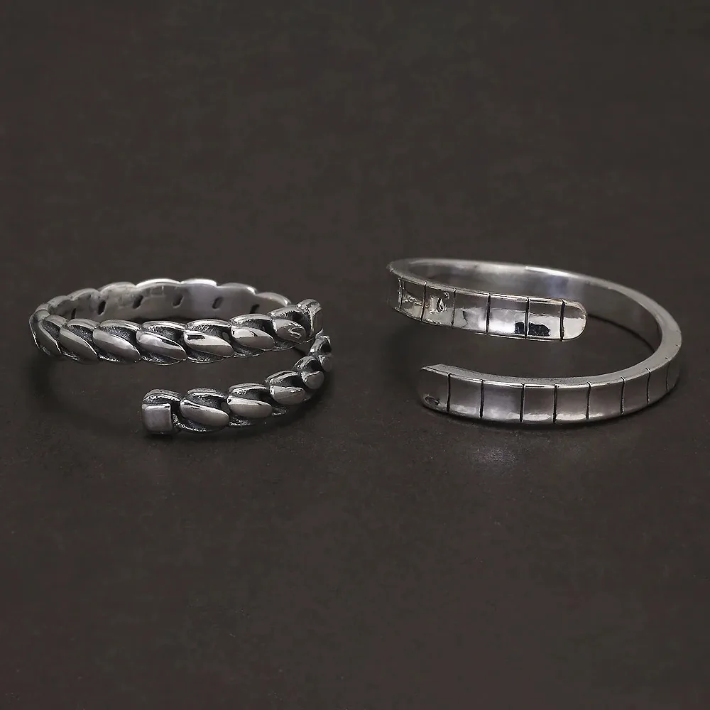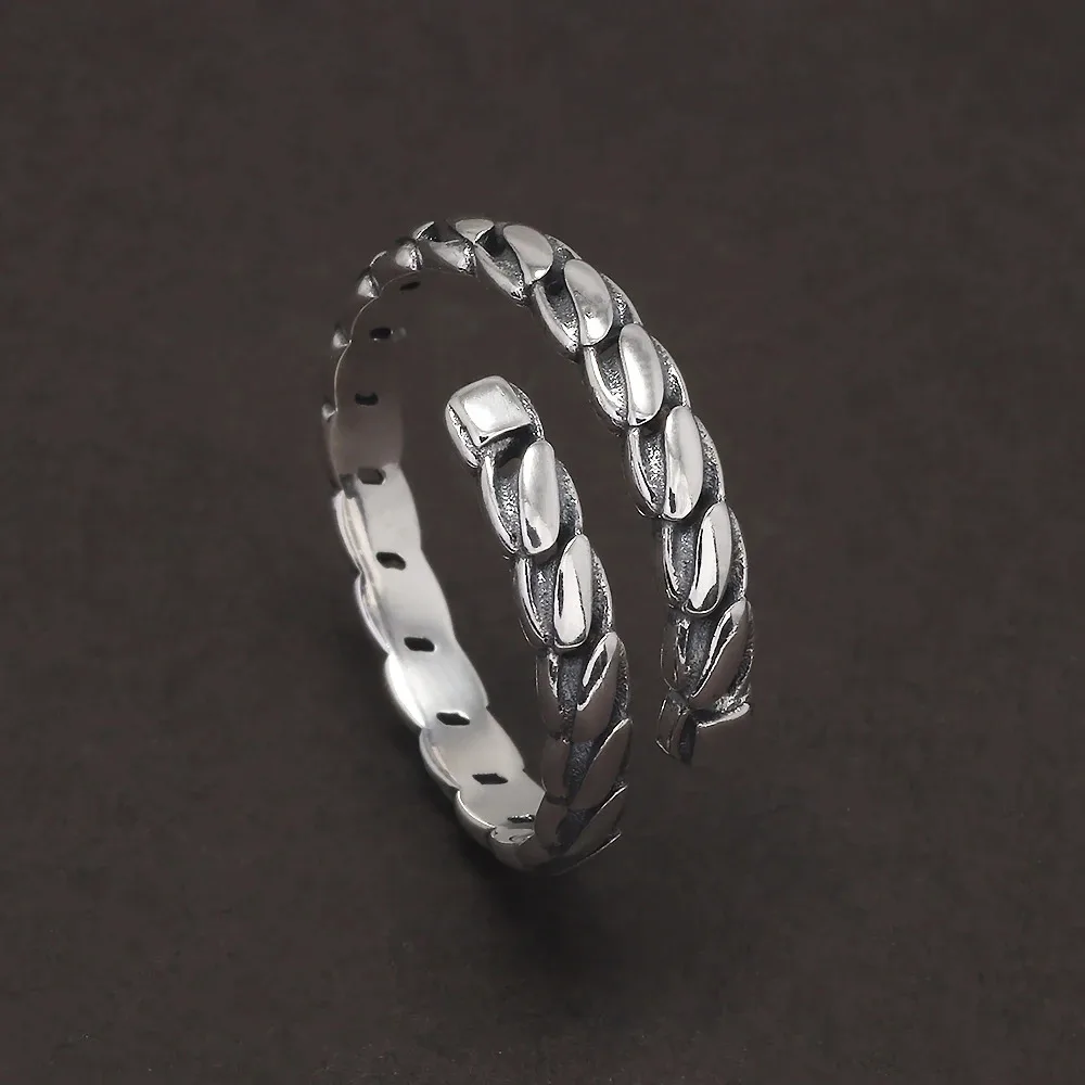 925 Sterling Silver Twisted Open Ring for Women Men Adjustable Geometric Simple Fashion Retro Party Jewelry Accessories