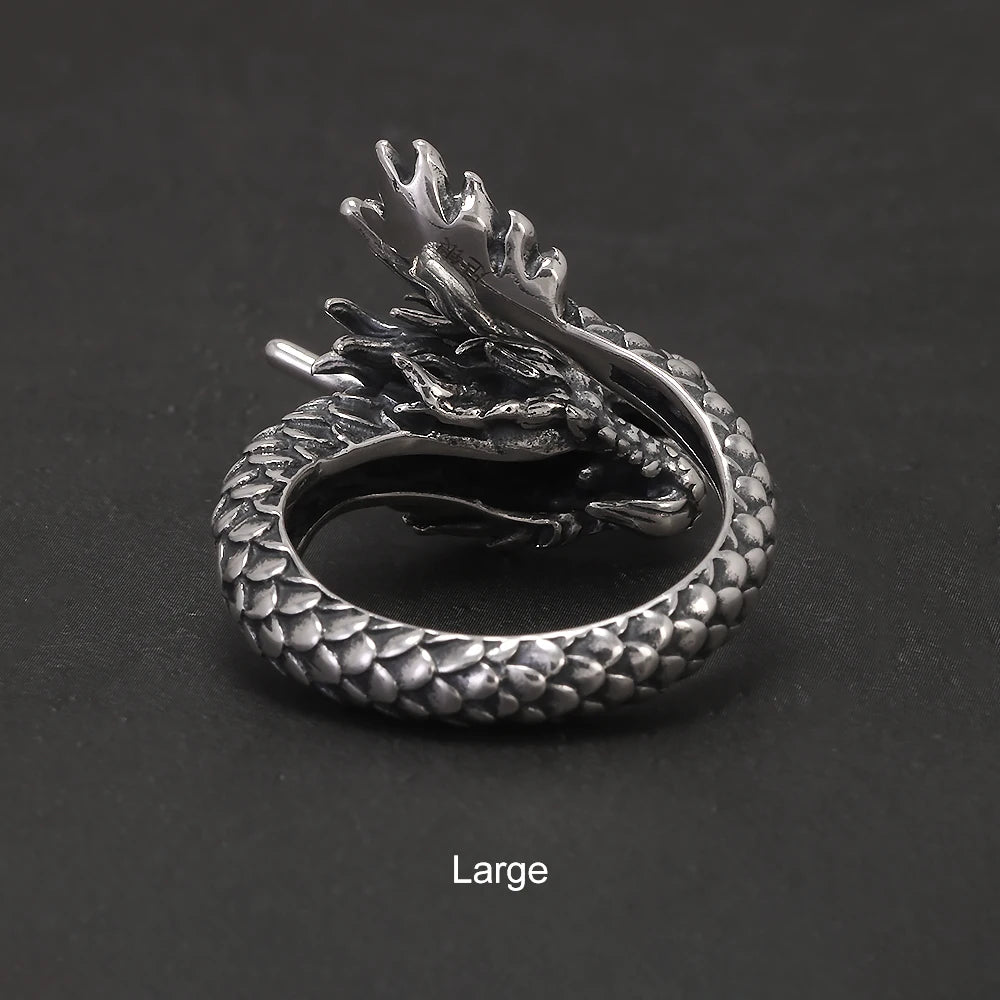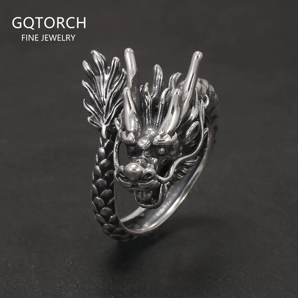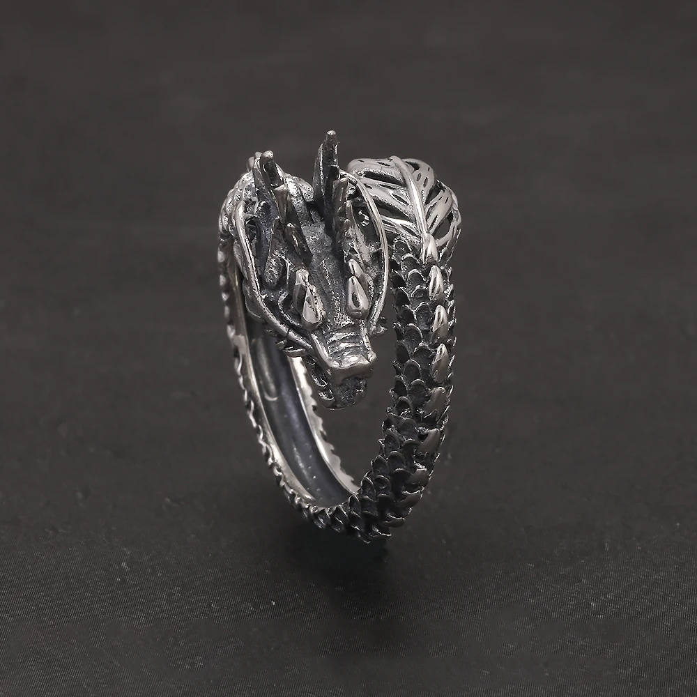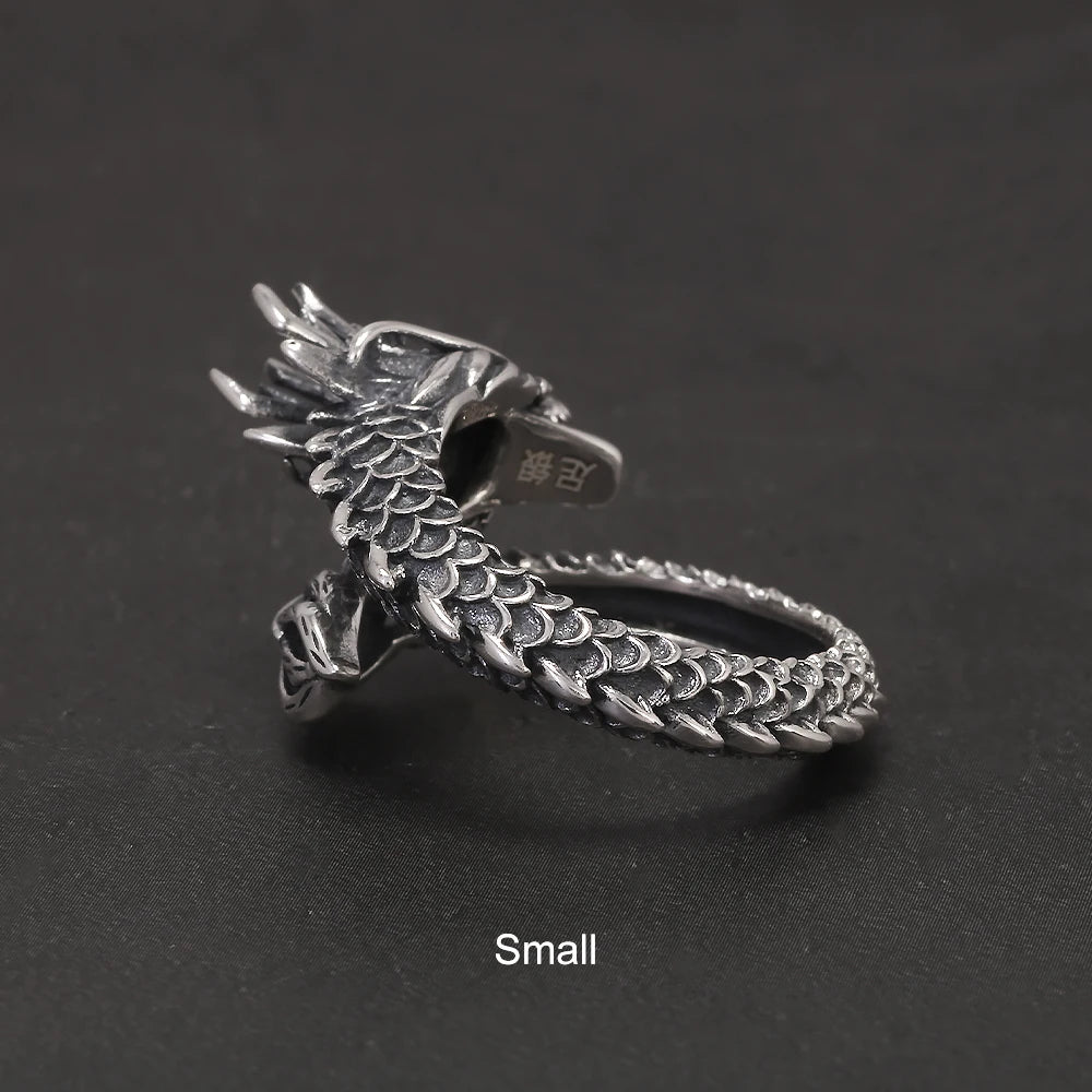 999 Pure Silver Domineering Dragon Ring for Men Adjustable Open Ring Antiqued Vintage Gothic Punk Male Jewelry