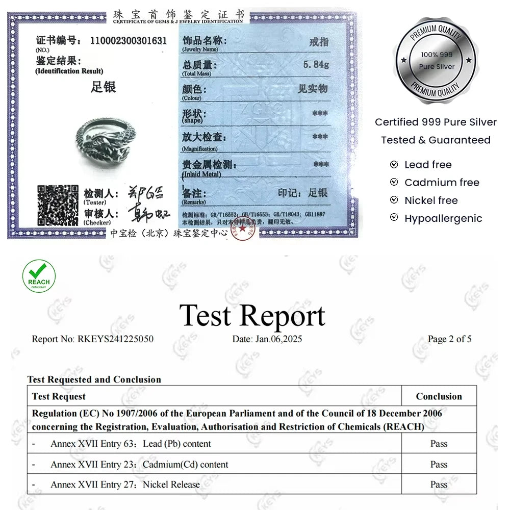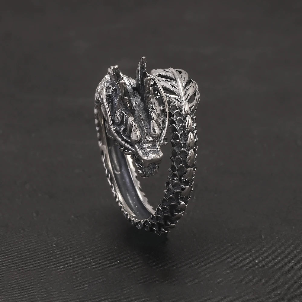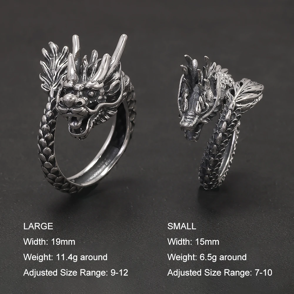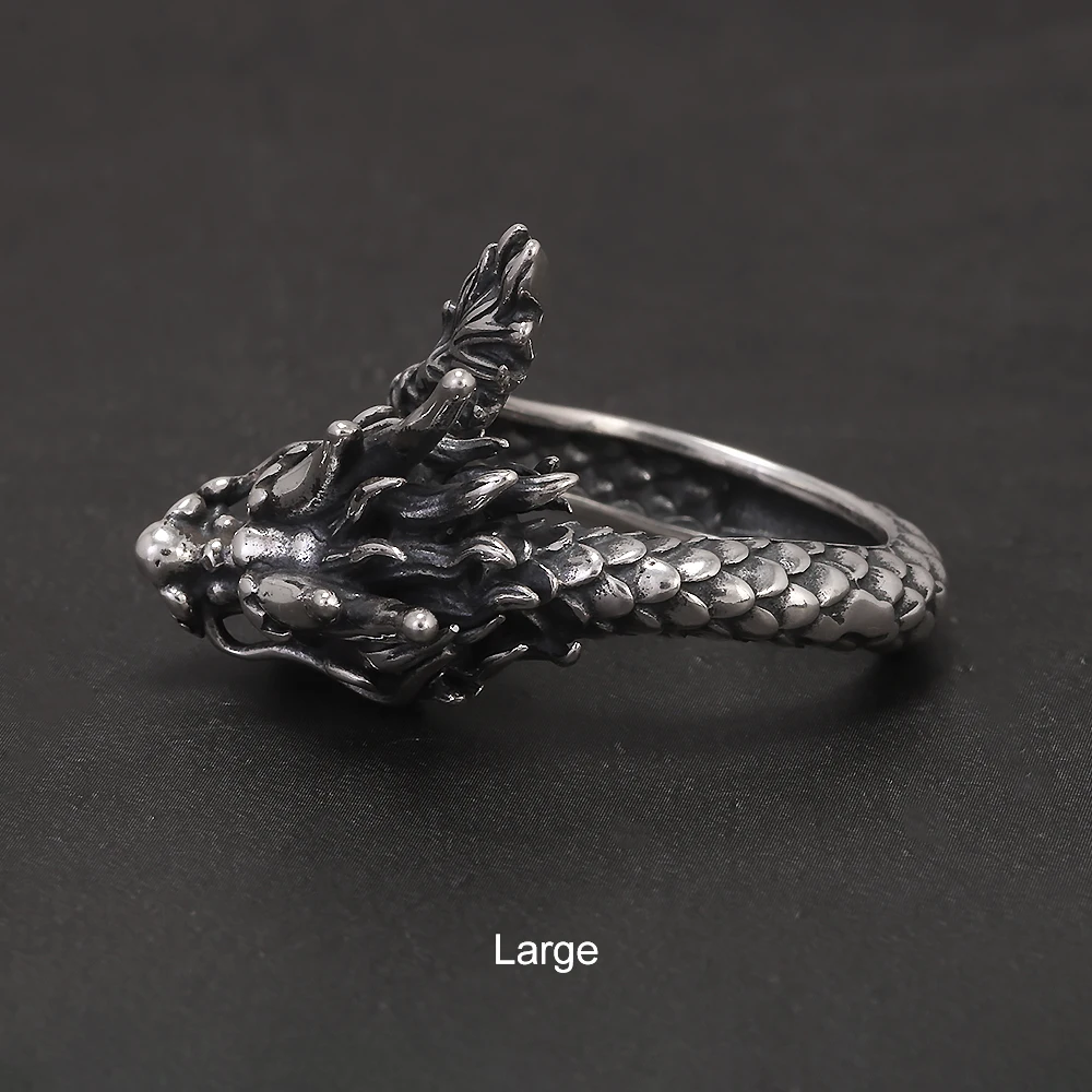 999 Pure Silver Domineering Dragon Ring for Men Adjustable Open Ring Antiqued Vintage Gothic Punk Male Jewelry