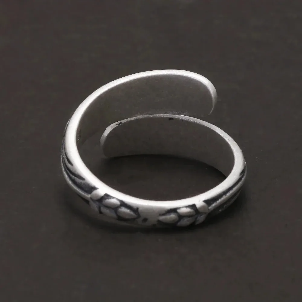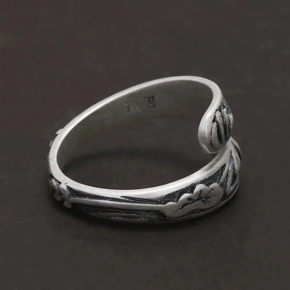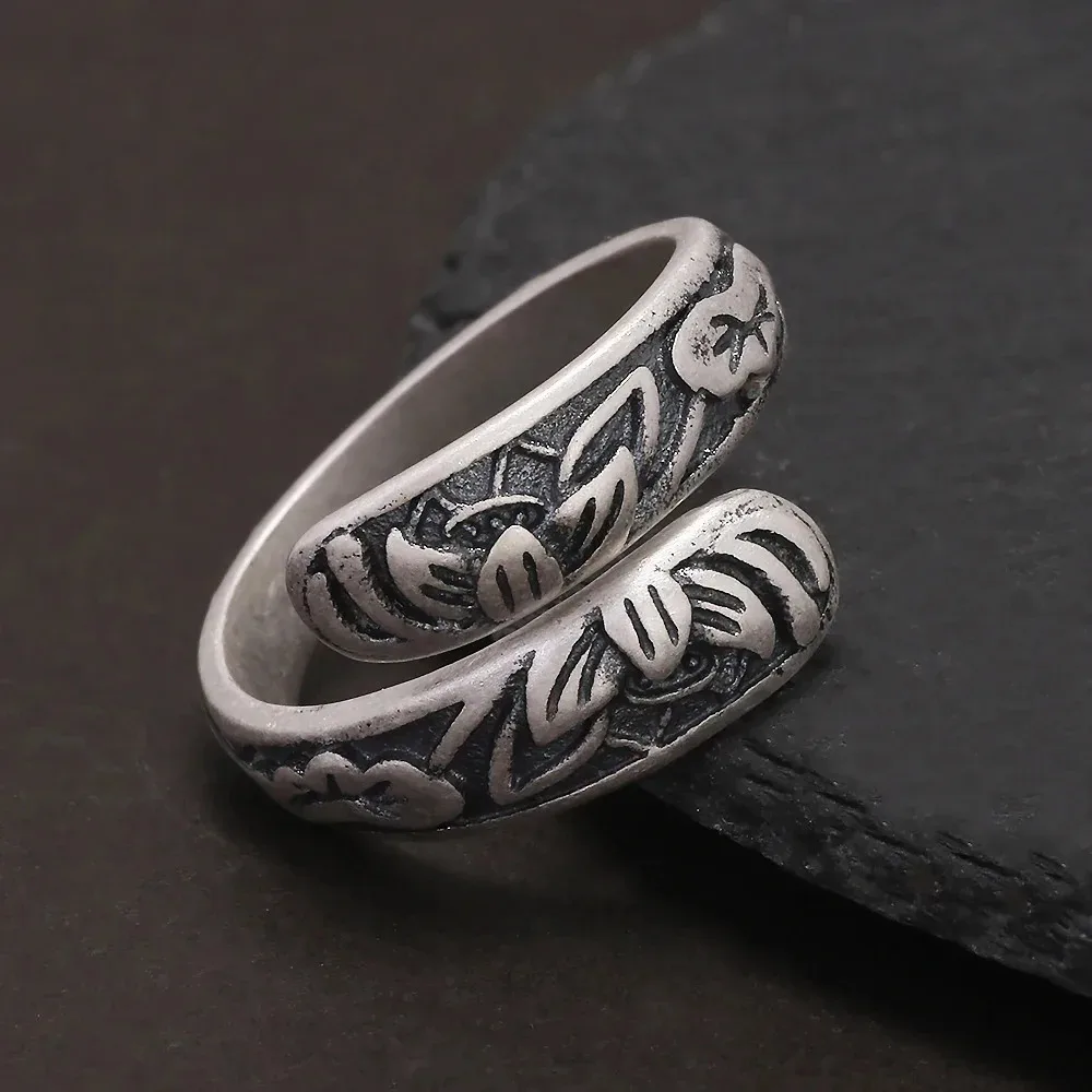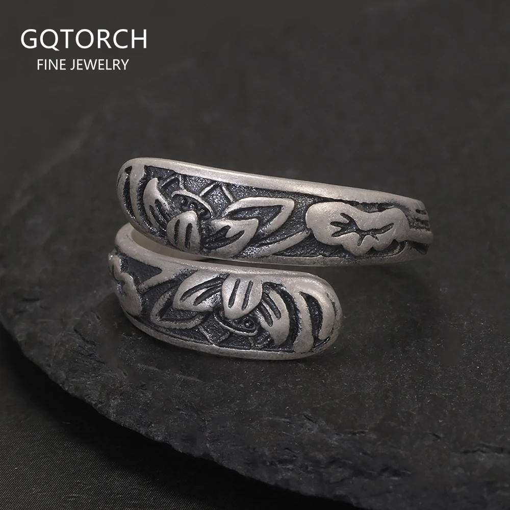 999 Pure Silver Retro Lotus Open Ring for Women Vintage Thai Silver Color Double Layer Adjustable Ethnic Female Jewelry Gift