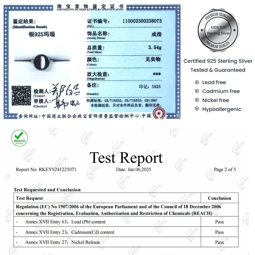 Real 925 Sterling Silver Ring Simple Round Ring Turkish Black Onyx Shell Minimalist Adjustable Jewelry for Men and Women