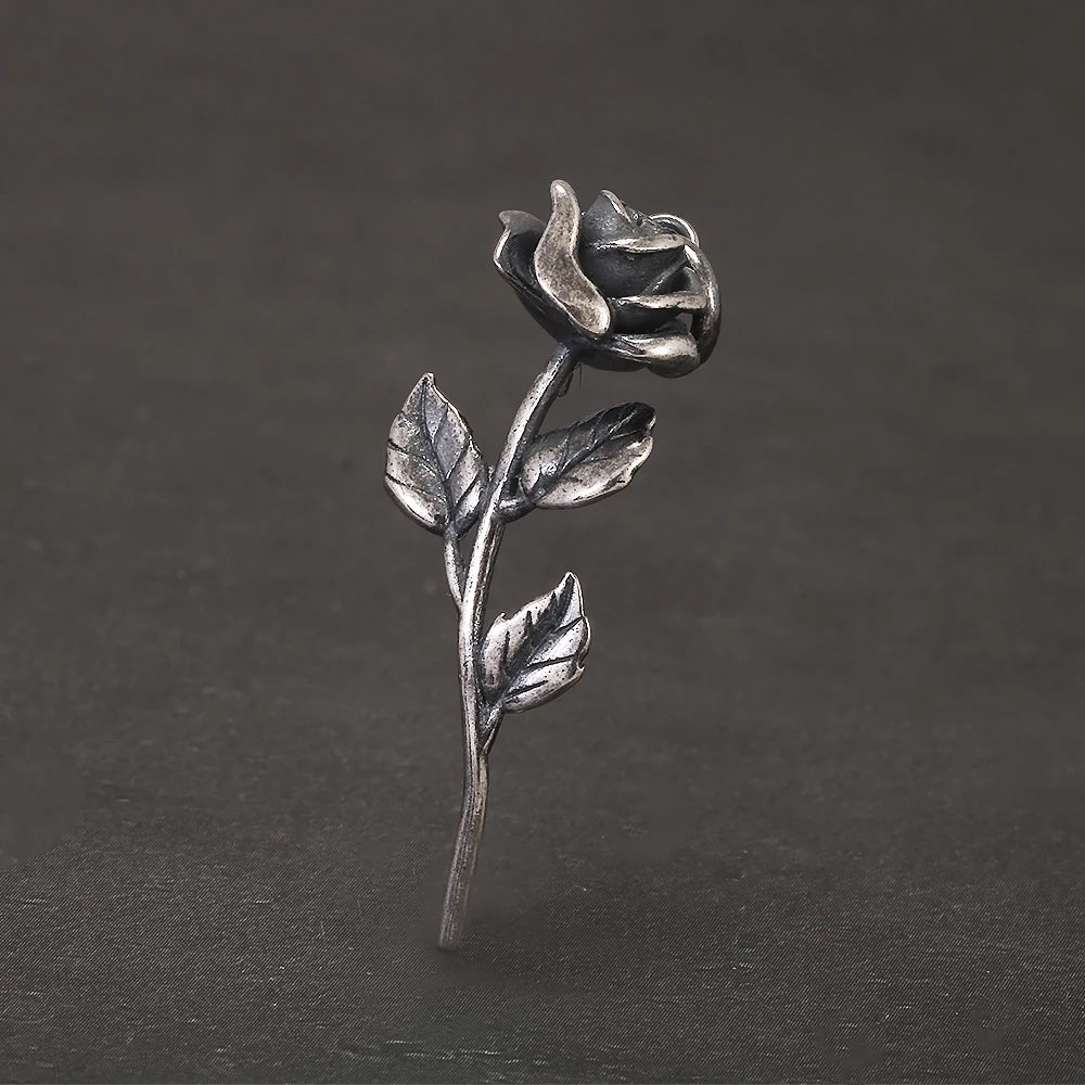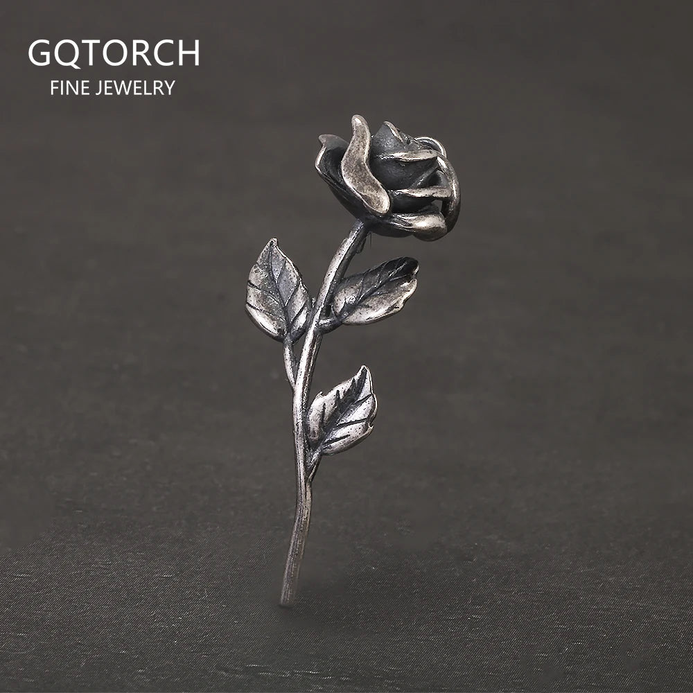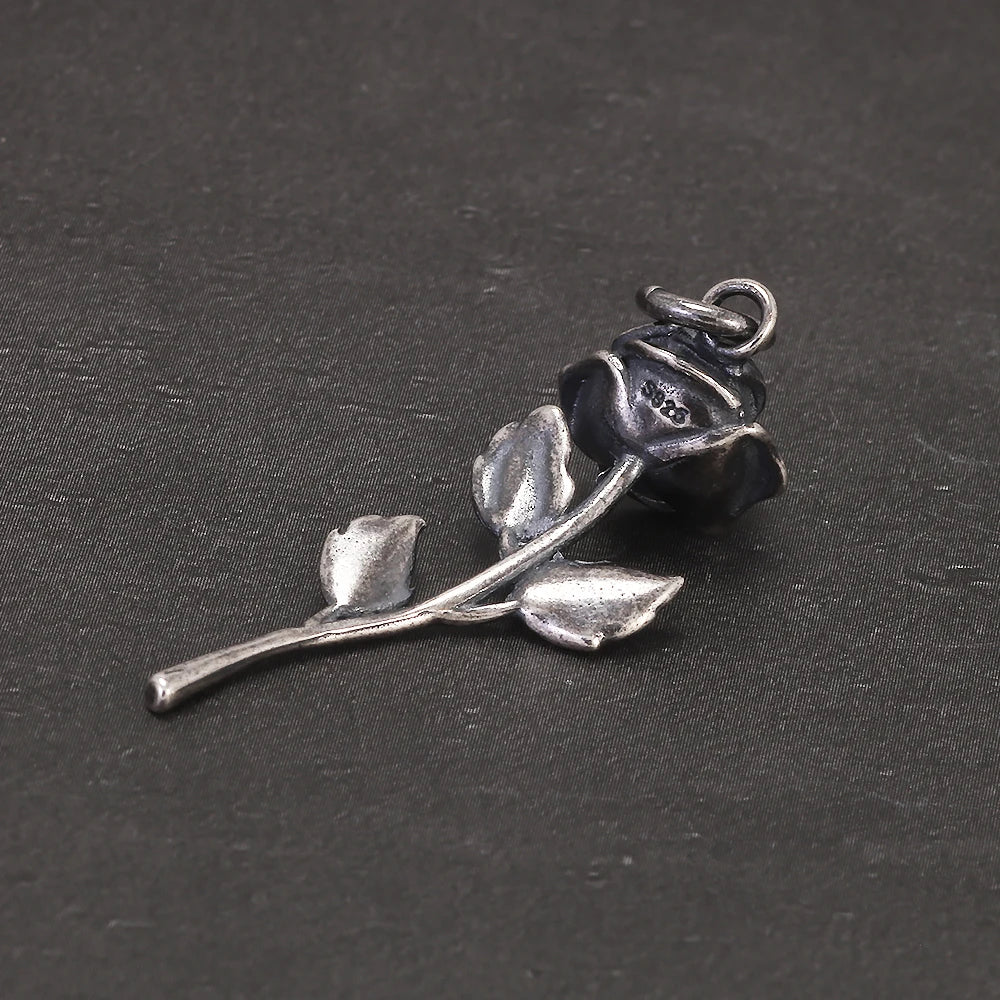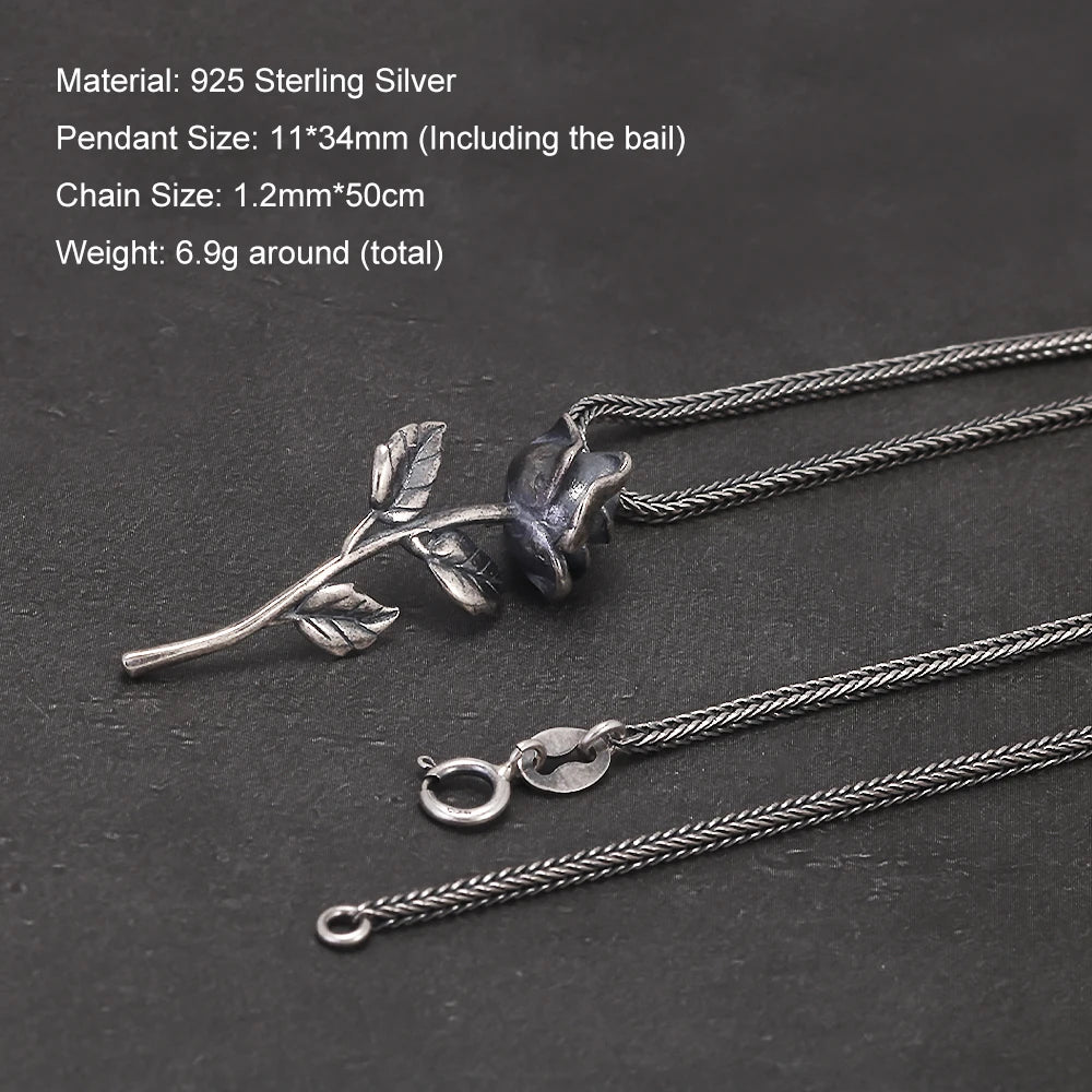 Original 925 Sterling Silver Antiqued Rose Pendant Necklace for Women Gothic Vintage Accessory Flower Jewelry Party Gift