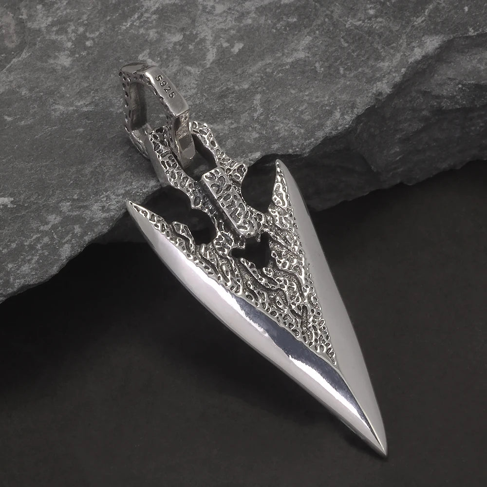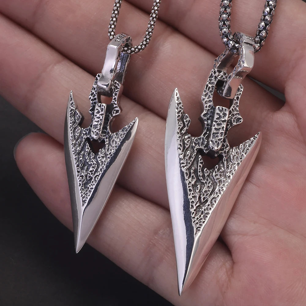 925 Sterling Silver Arrow Dart Pendant Necklace for Men Stone Spear Retro Fashion Punk Style Vintage Jewelry Gift Handmade