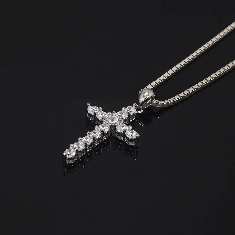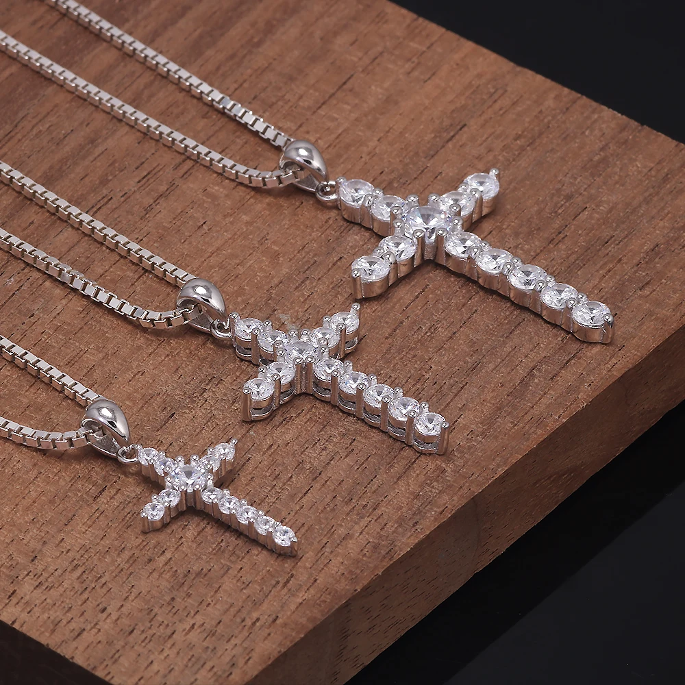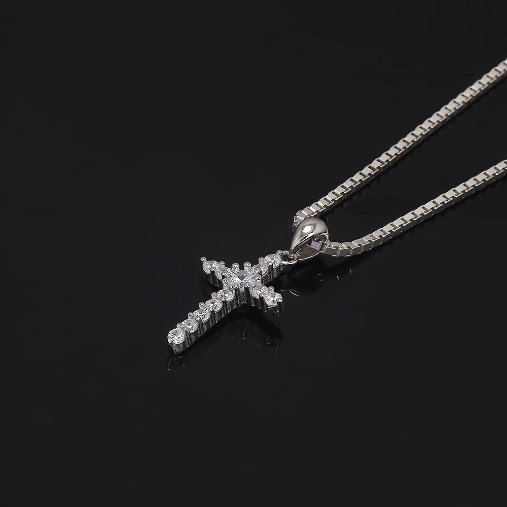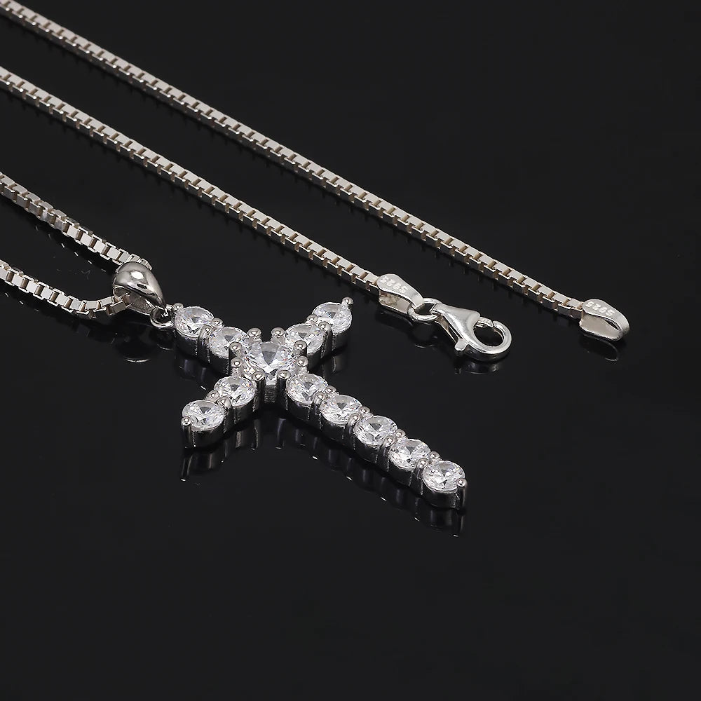 925 Sterling Silver Cross Pendant Necklace Box Chain Full Pave Zircon Sparkling Hiphop Punk Retro Fashion Unisex Jewelry