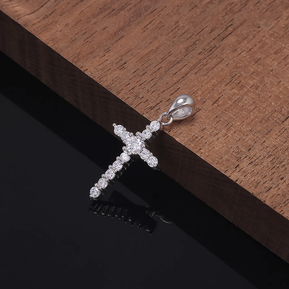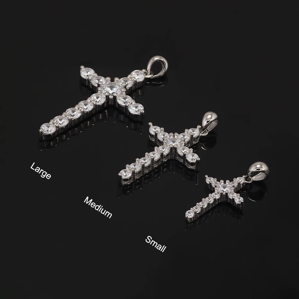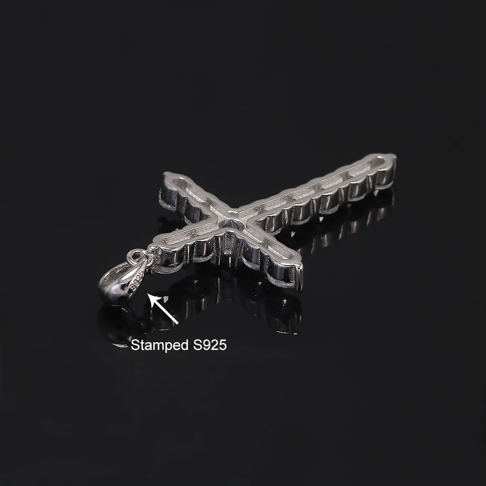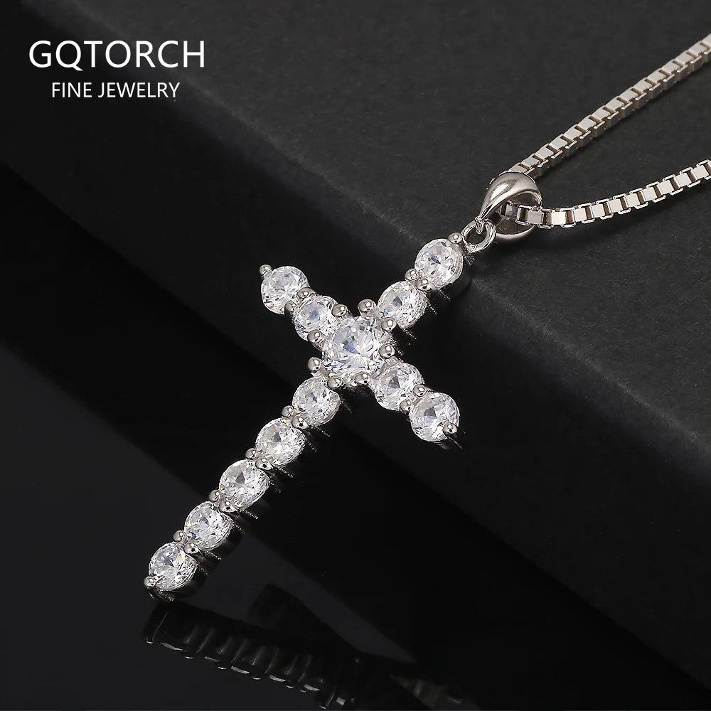 925 Sterling Silver Cross Pendant Necklace Box Chain Full Pave Zircon Sparkling Hiphop Punk Retro Fashion Unisex Jewelry