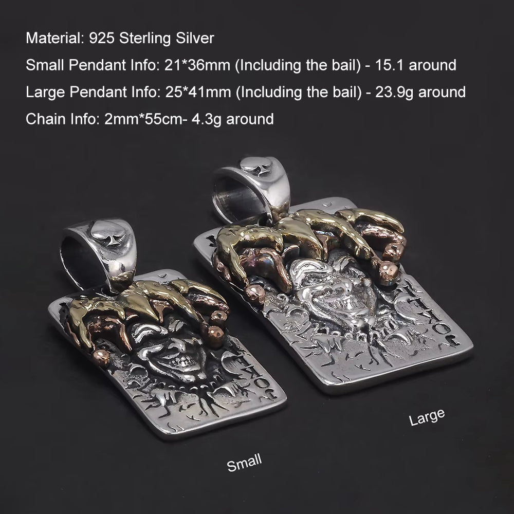 925 Sterling Silver Joker Pendant Necklace for Men Poker Cards Clown Retro Hip Hop Punk Rock Male Jewelry Gift