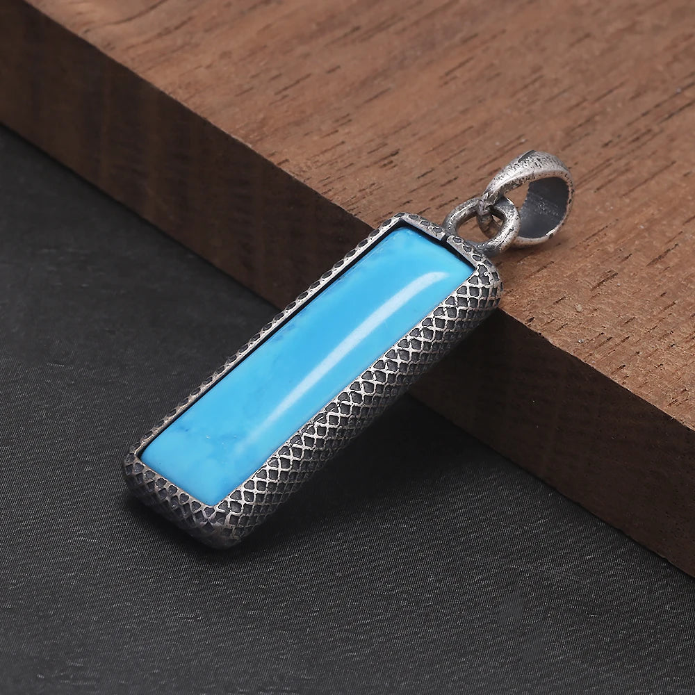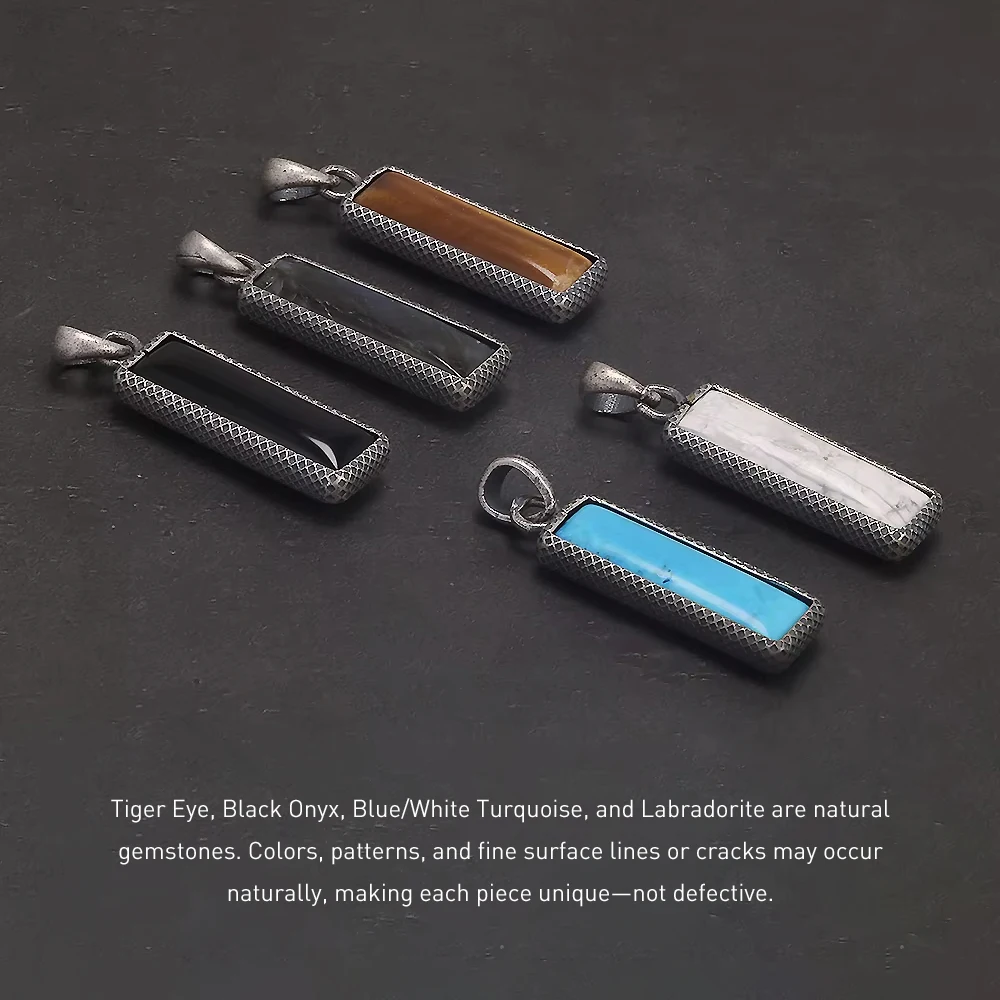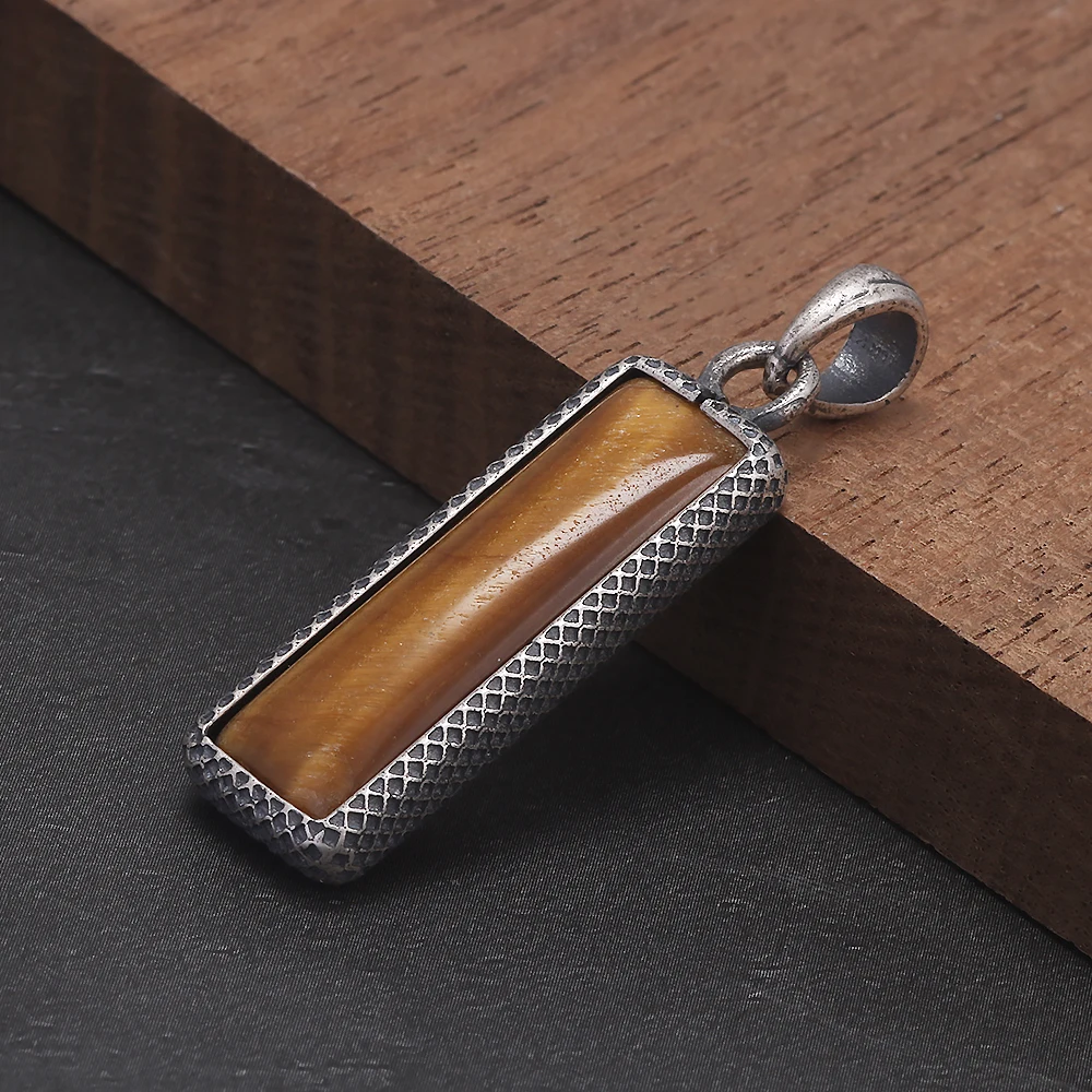 925 Sterling Silver Natural Stone Rectangle Tag Pendant for Men Women Tiger Eye's Stone Turquoise Simple Retro Vintage Jewelry