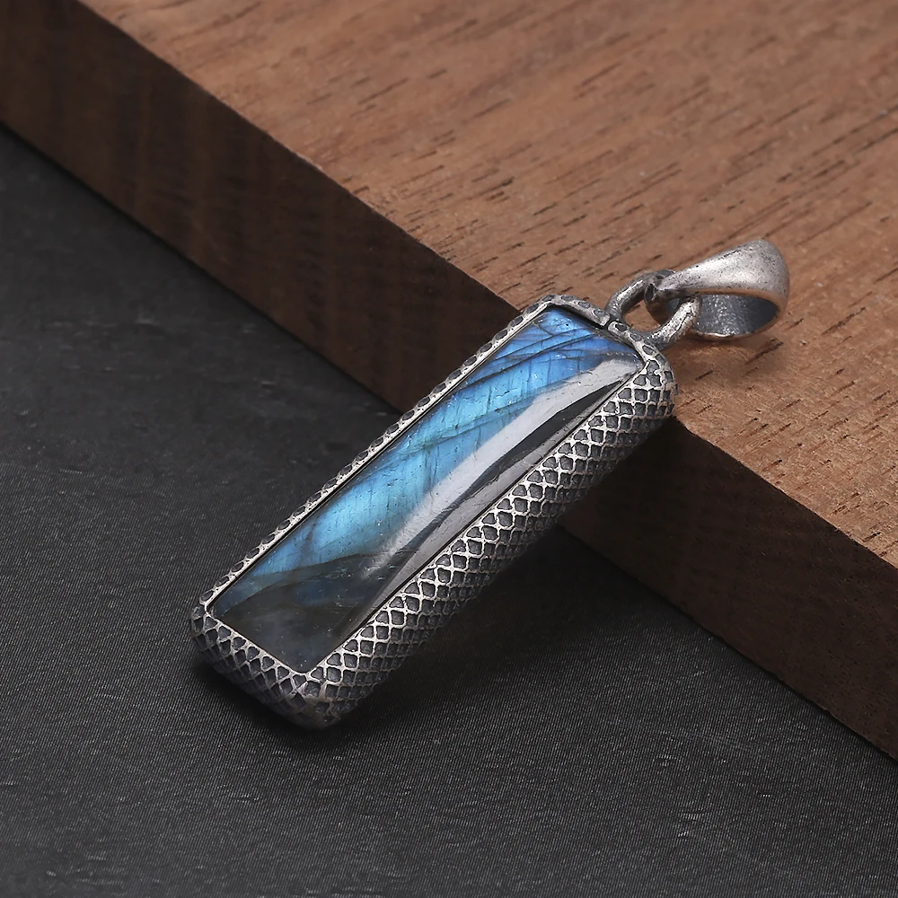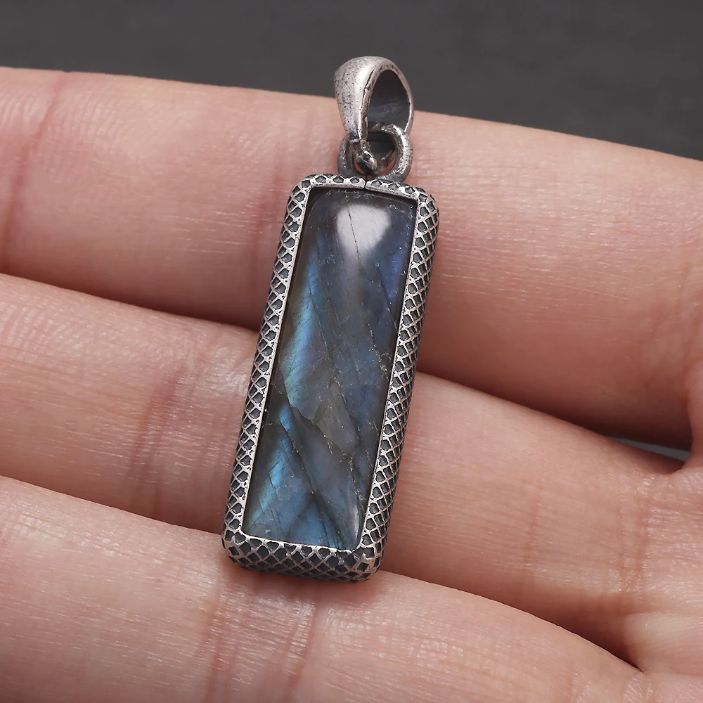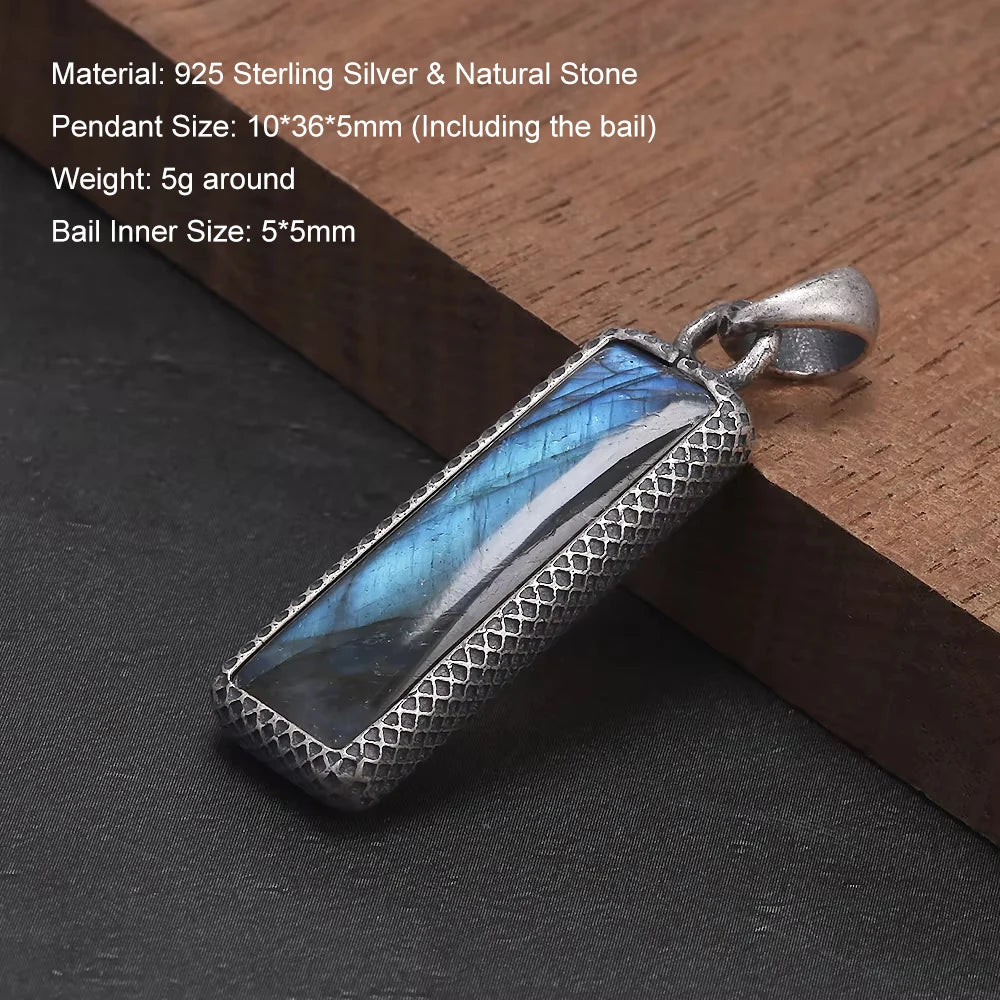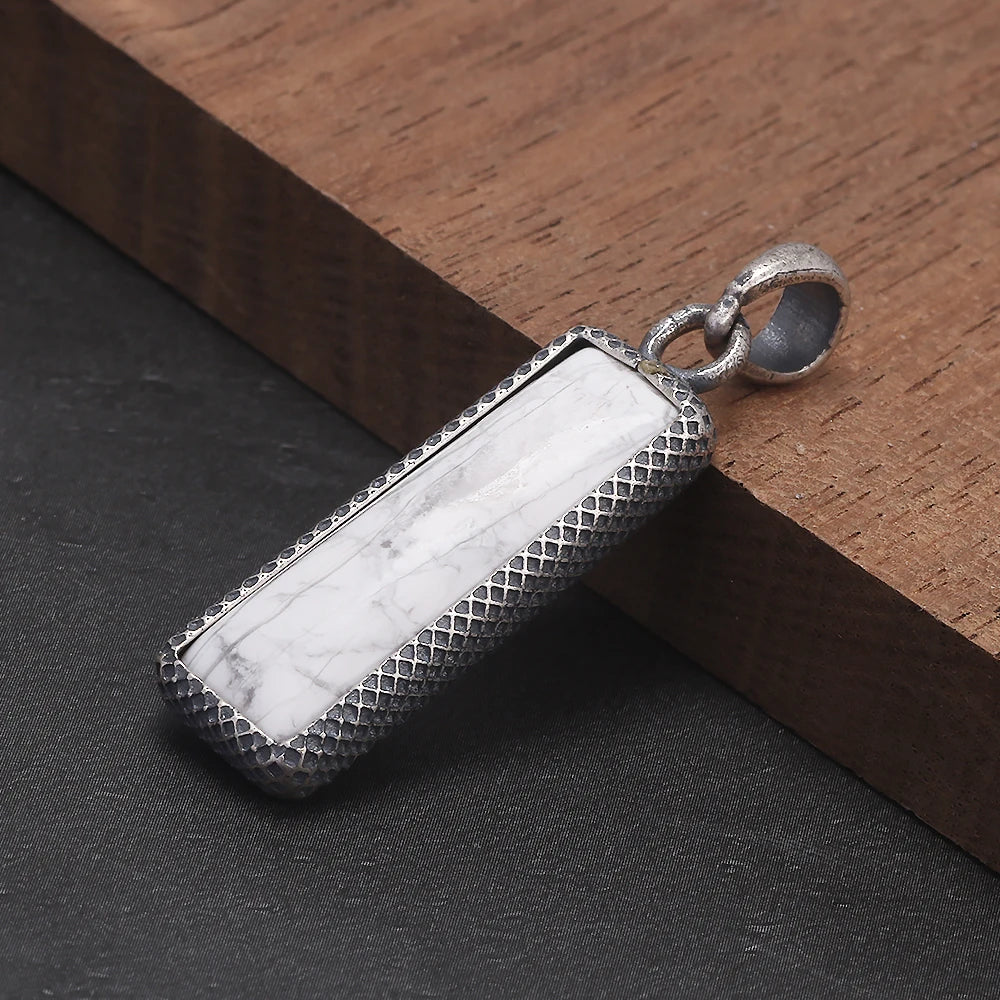 925 Sterling Silver Natural Stone Rectangle Tag Pendant for Men Women Tiger Eye's Stone Turquoise Simple Retro Vintage Jewelry