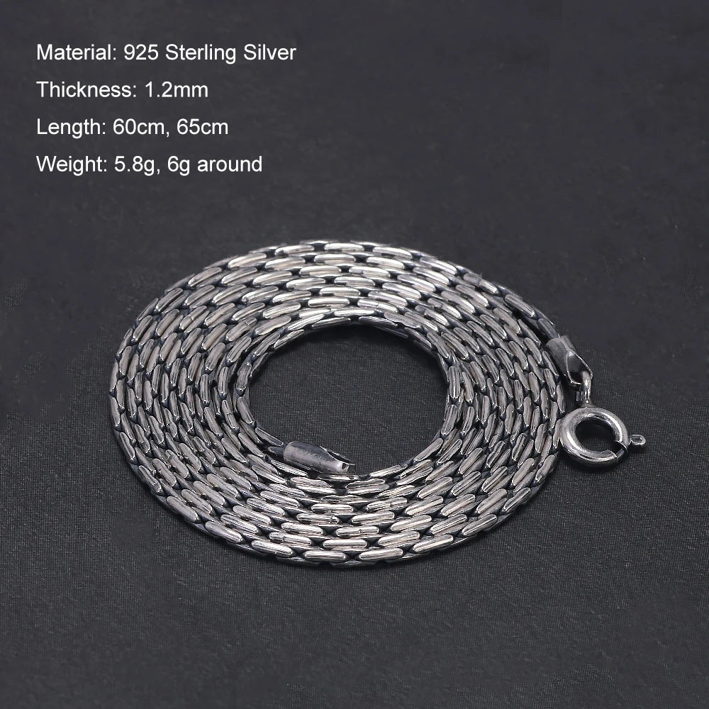 S925 Sterling Silver Bamboo Chain Necklace for Men Women 1.2mm Basic Niche Link Chain Necklace Simple Retro Fashion Jewelry