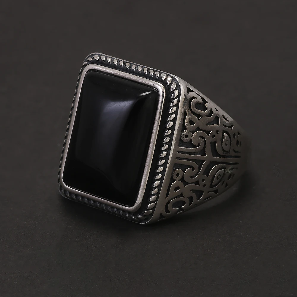 925 Sterling Silver Black Onyx Signet Ring for Men Natural Stone Cool Retro Vintage Punk Turkish Rings Biker Male Jewelry Gift