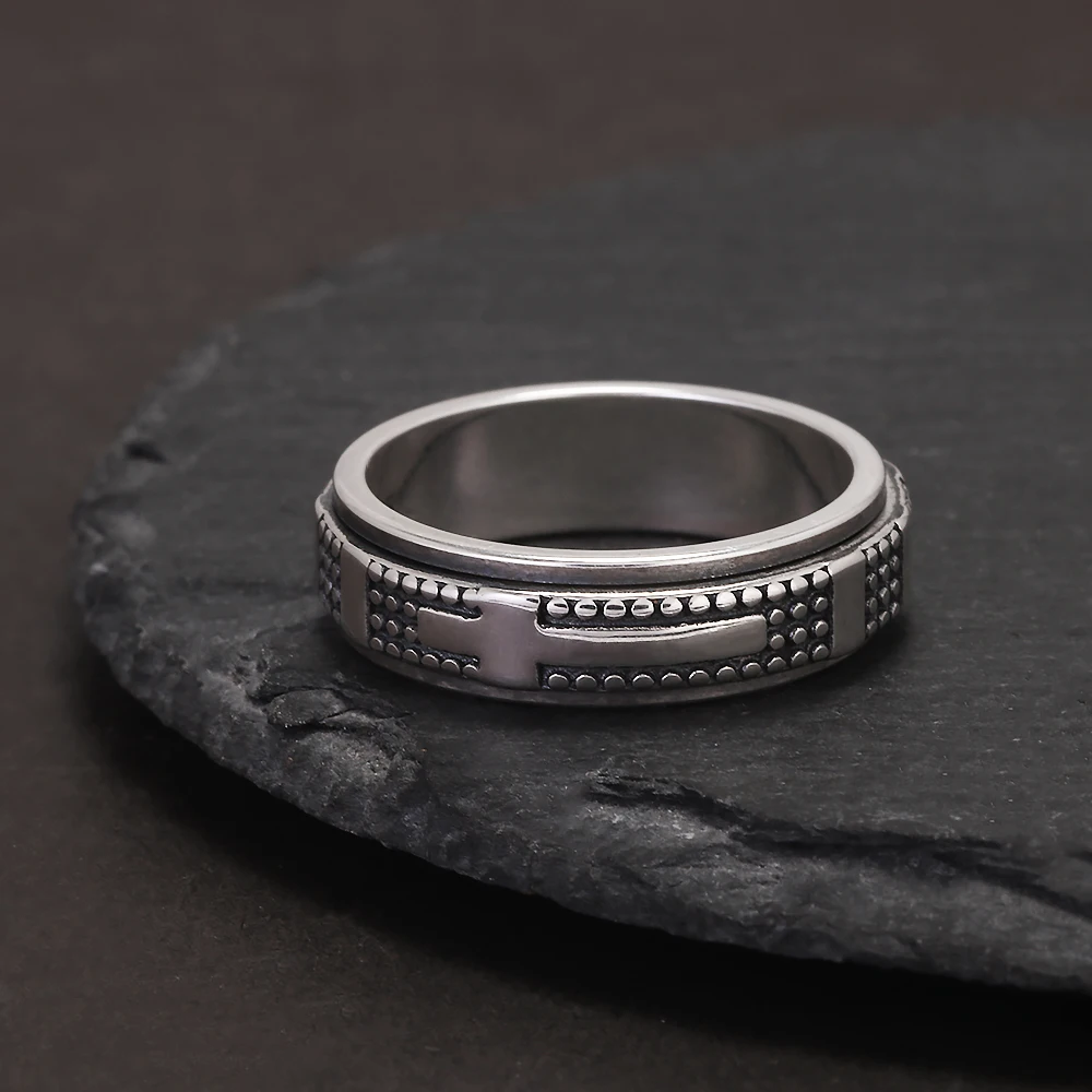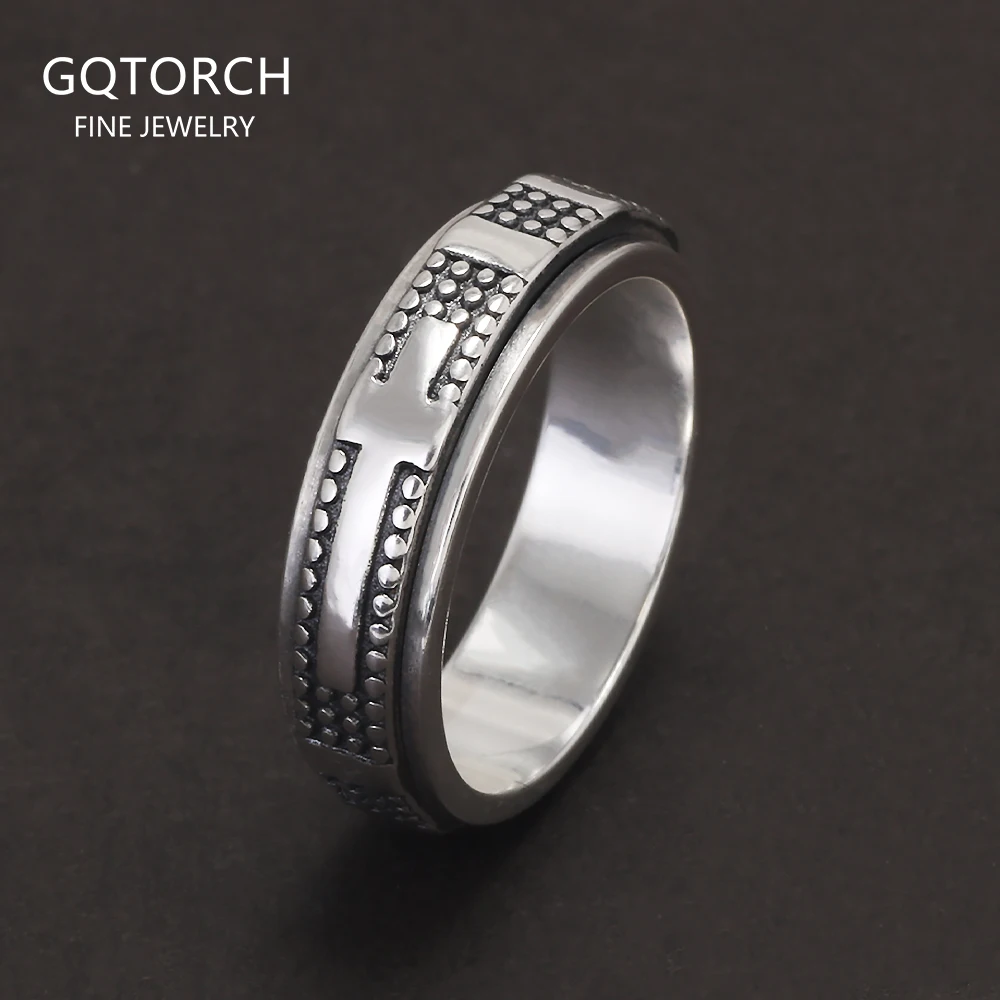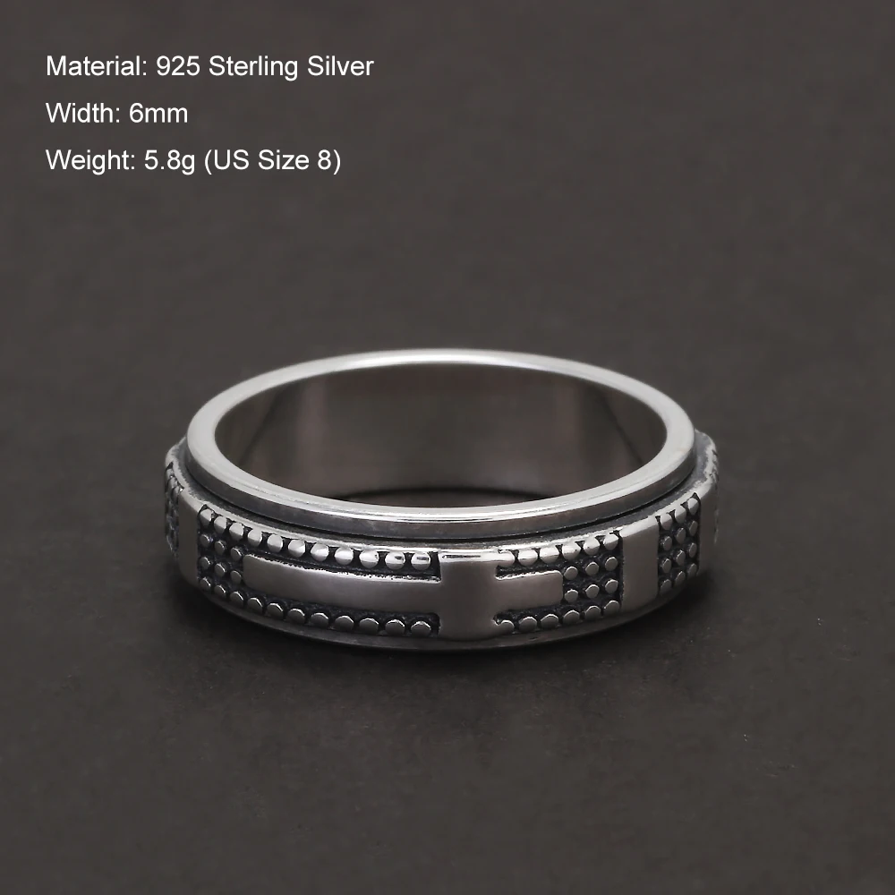 925 Sterling Silver Cross Anxiety Ring for Men Women Anti Stress Spinner Rings Vintage Fashion Christian Amulet Jewelry