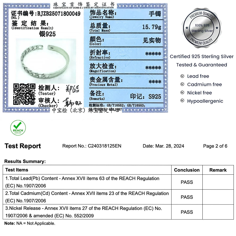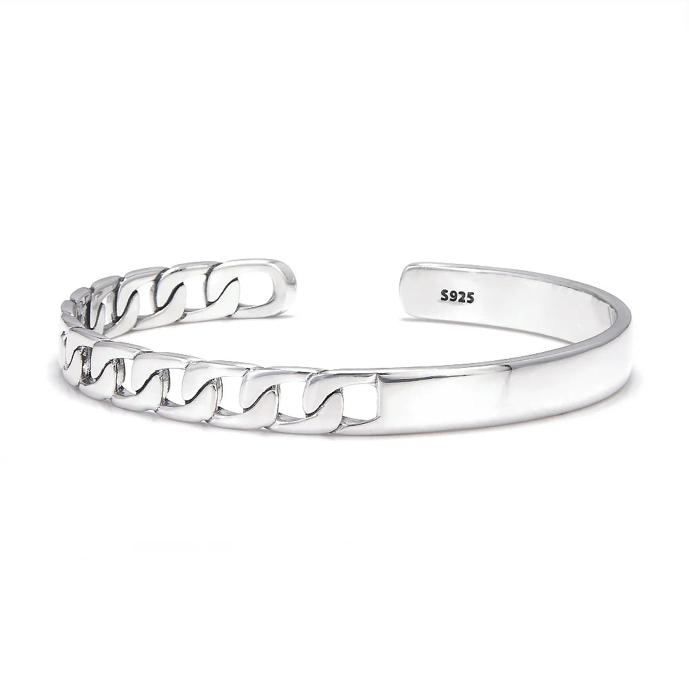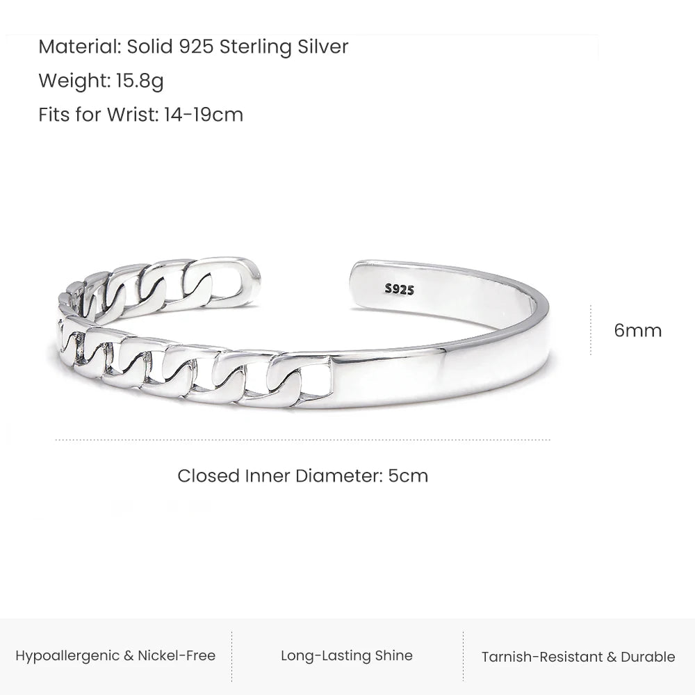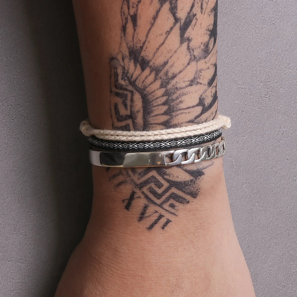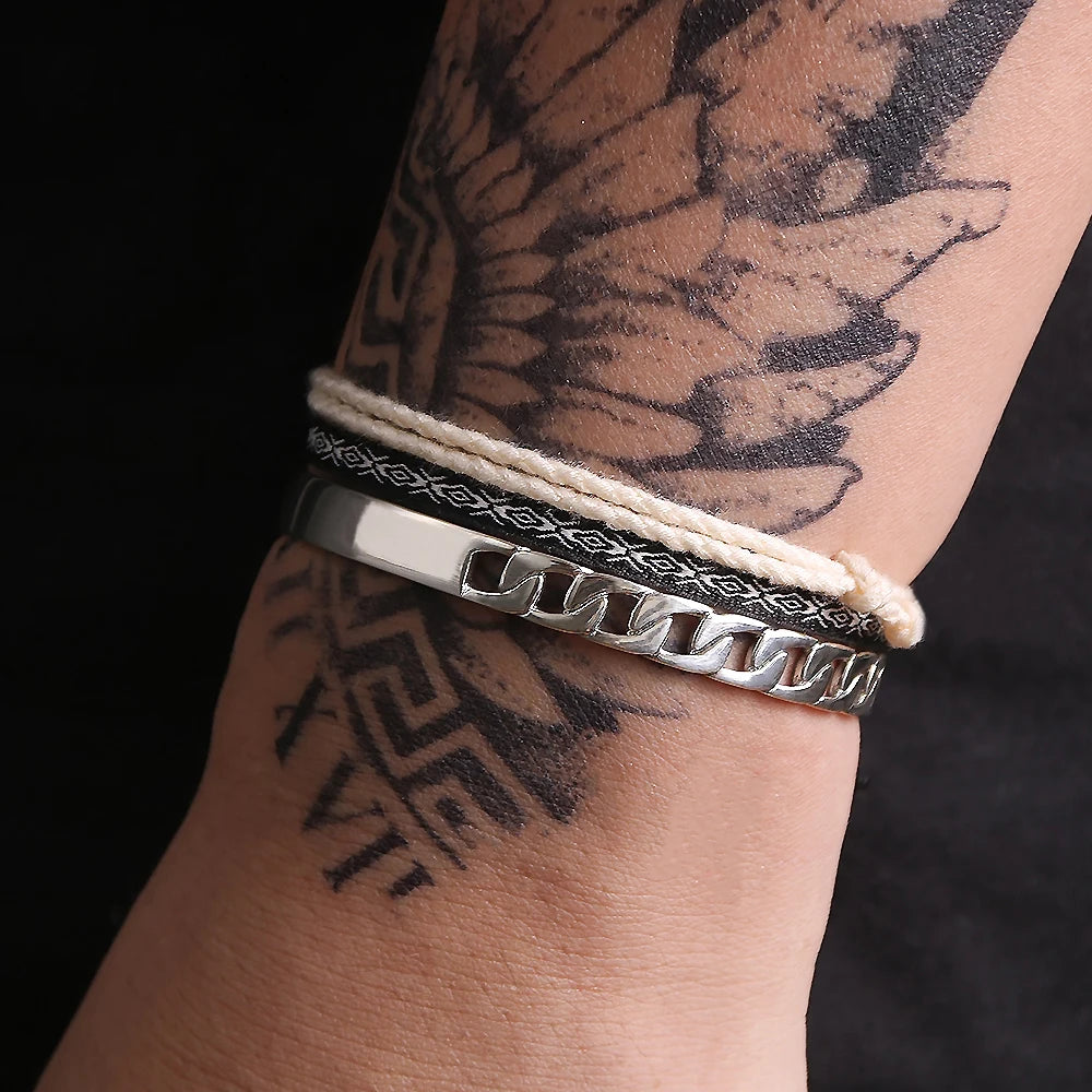3pcs/set 925 Sterling Silver Cuff Bangle Men's Stack Bracelet Black White Braided Knot Rope Handwoven Simple Fashion Jewelry