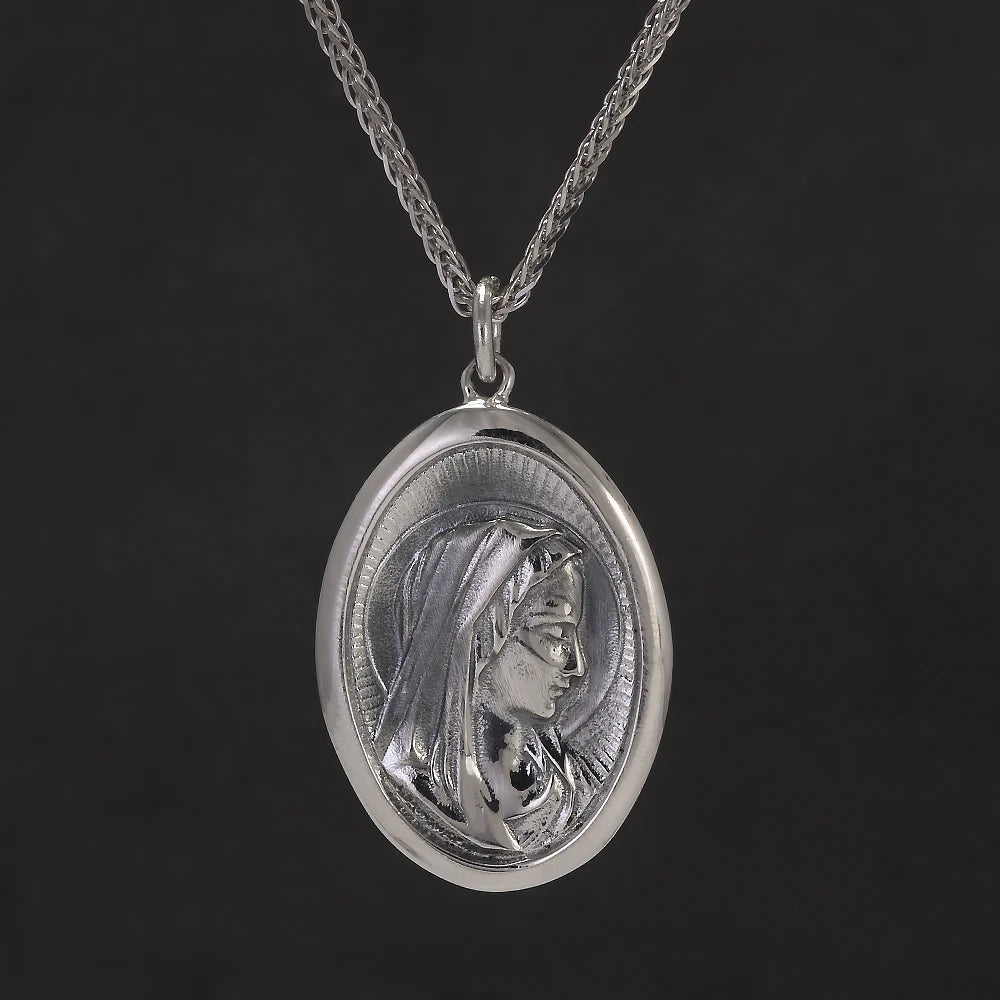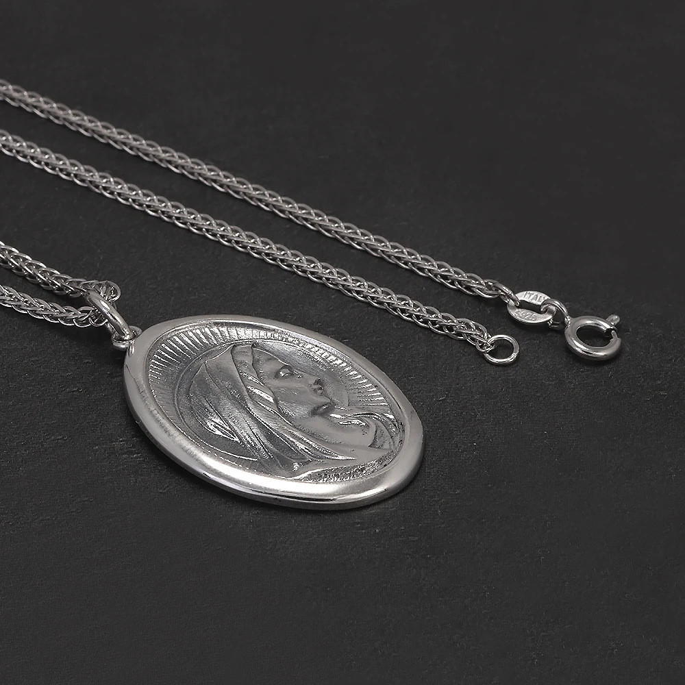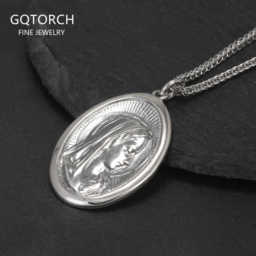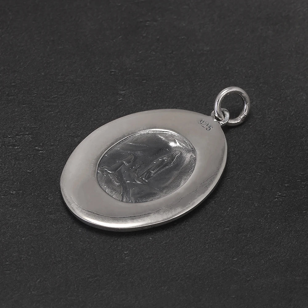 925 Sterling Silver Goddess Relief Portrait Pendant Necklace for Women Men Oval Shaped Vintage Retro Fashion Fine Jewelry Gift