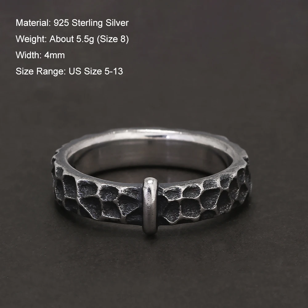 925 Sterling Silver Outlander Rings for Men Women Claire's Ring Retro Hammer Pattern Wedding Band Movie TV Show Jewelry Gift