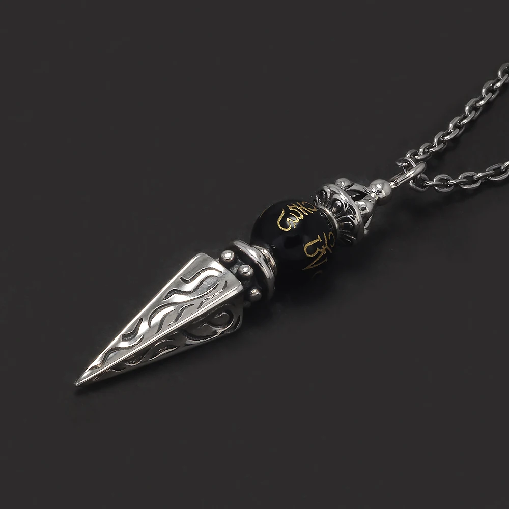 925 Sterling Silver Buddhist Amulet Vajra Pestle Pendant Necklace Black Onyx Sanskrit Six Character Mantra Retro Tibetan Jewelry