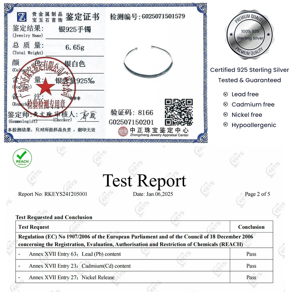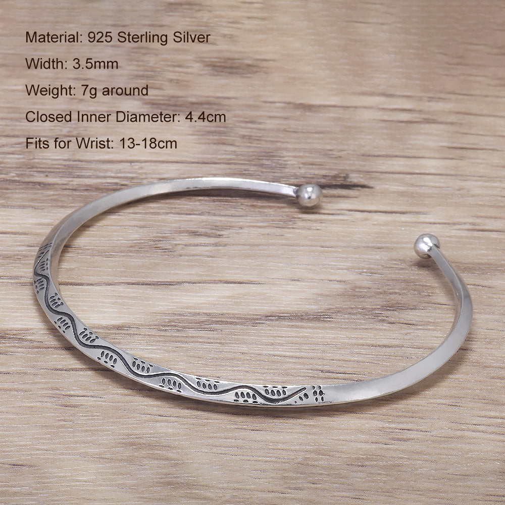 925 Sterling Silver Wave Thin Open Cuff Bracelet for Women Men Ethnic Style Opening Bangle Retro Jewelry