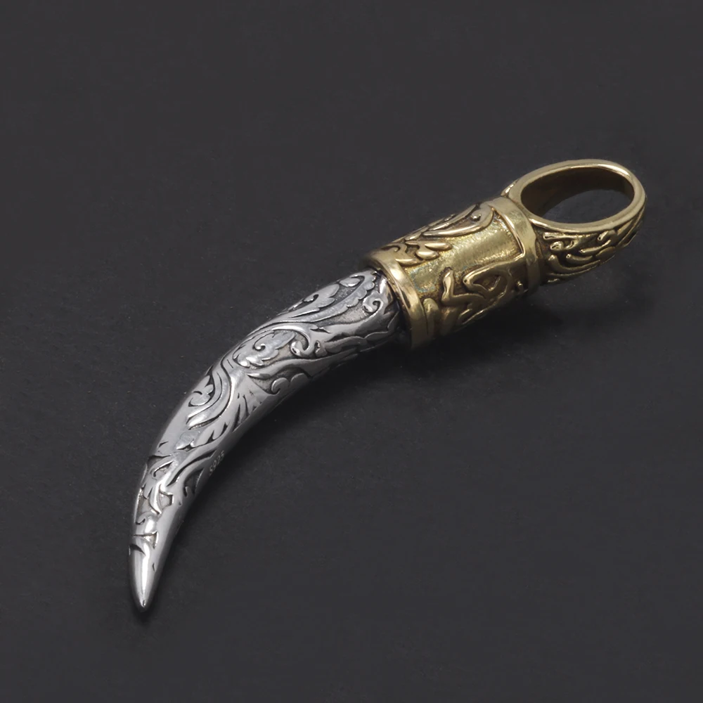 Real S925 Silver Vintage Wolf Tooth Pendant Necklace for Men Punk Rock Hiphop Fashion Animal Amulet Jewelry