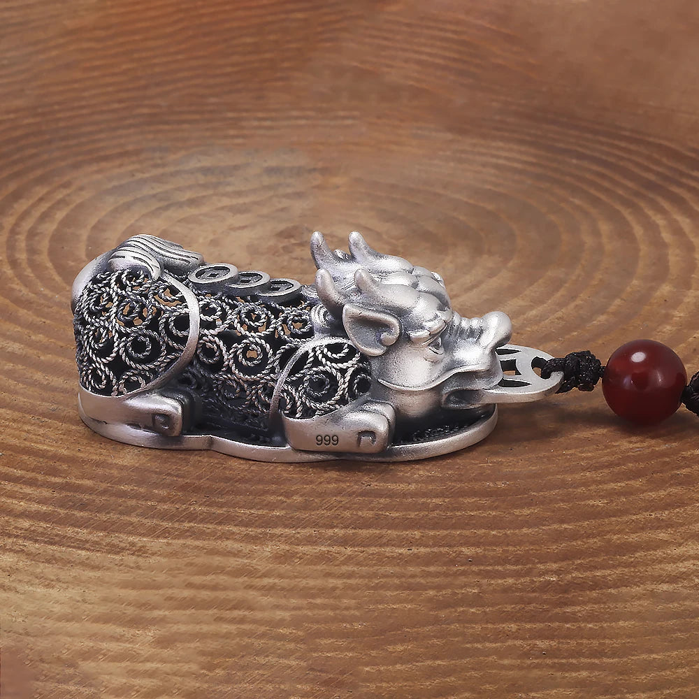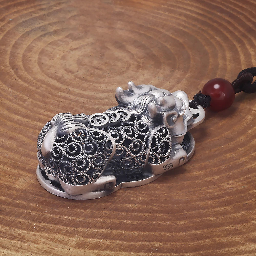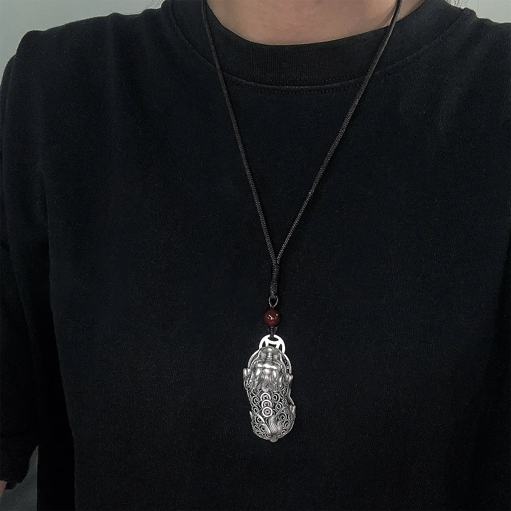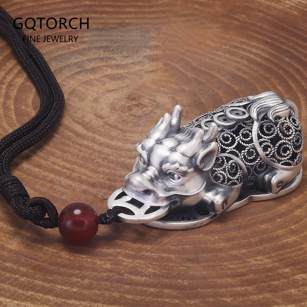 999 Pure Silver Large Pixiu Coin Lucky Pendant Necklace for Men Good Wealth Vintage Feng Shui Protection Jewelry Gift