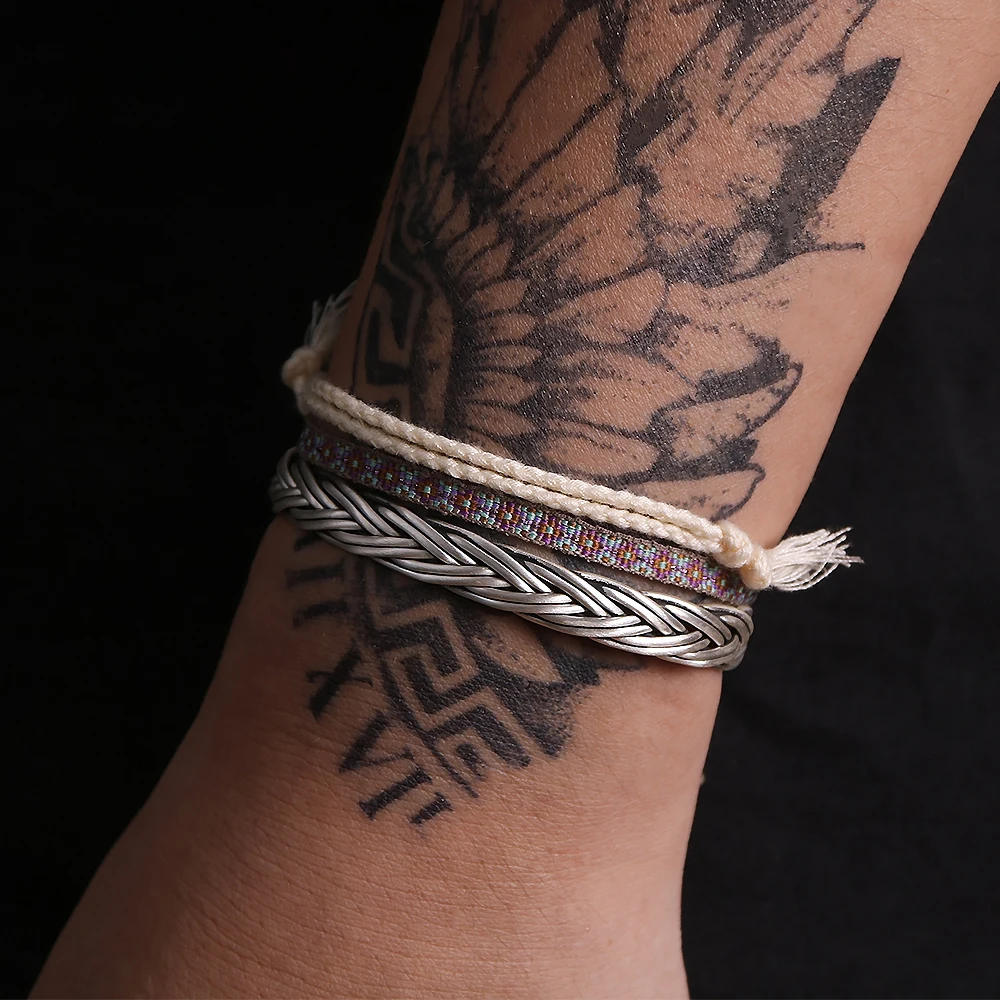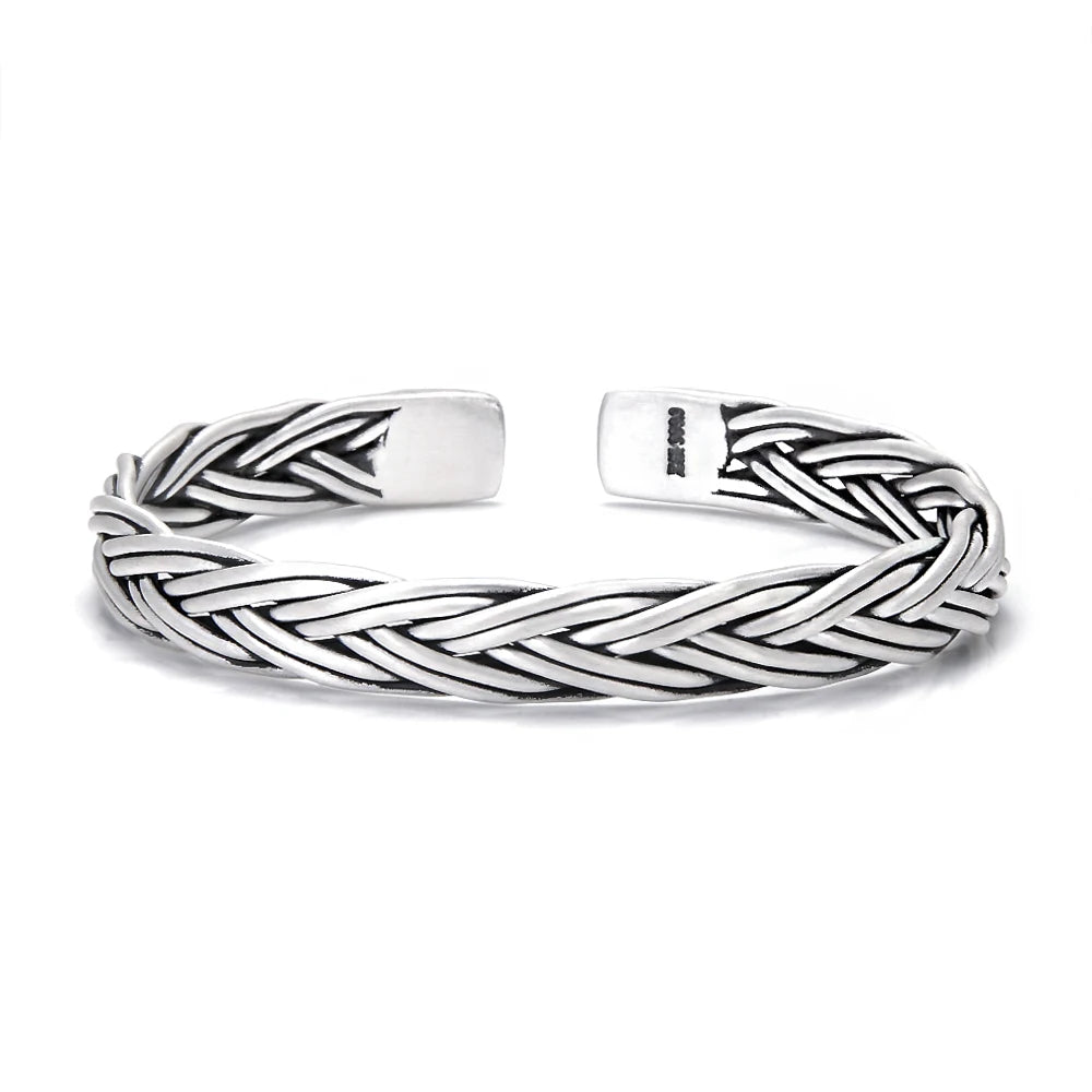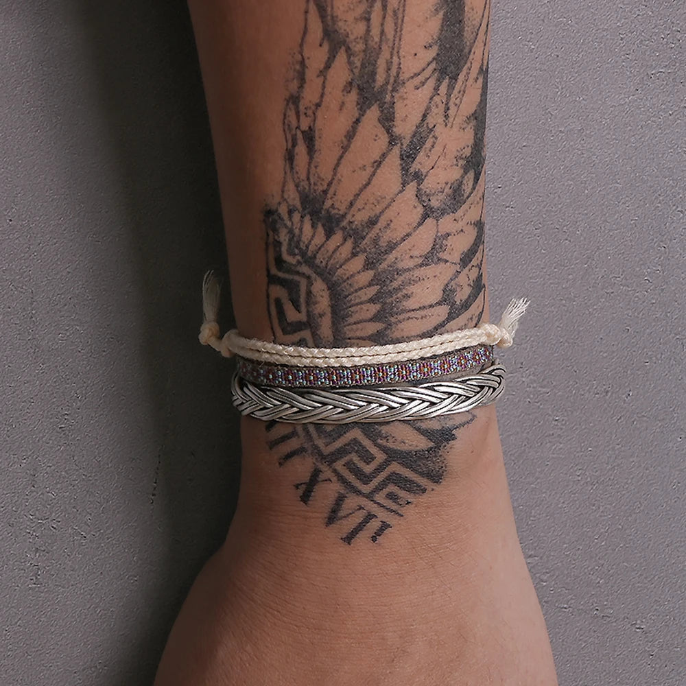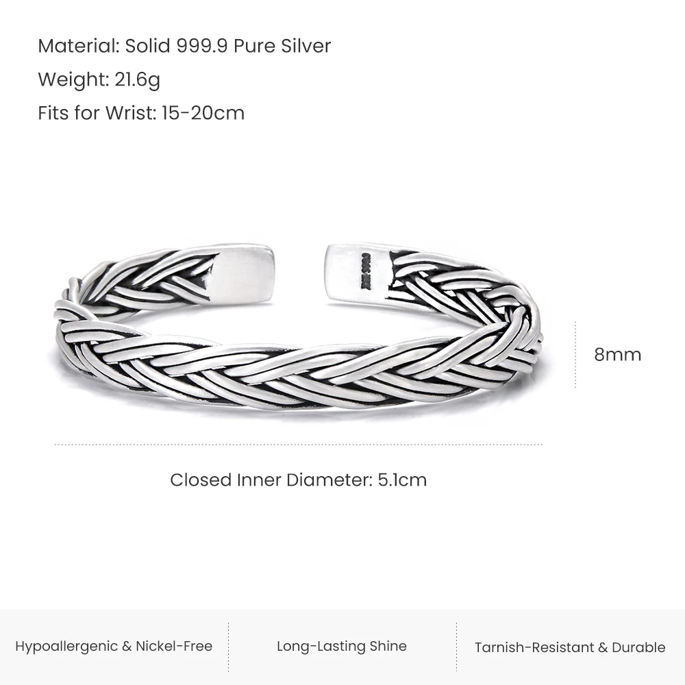 3pcs/set Handmade 999 Pure Silver Twist Bangle Flower Rope Knot Braid Wrist Chain Bracelet Bohemian Ethnic Hand Jewelry Set