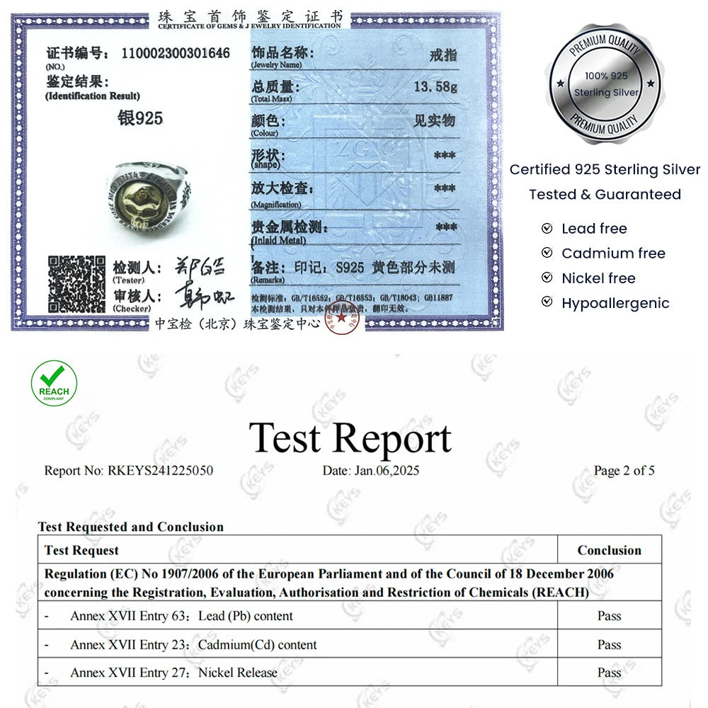 Real Pure 925 Sterling Silver Gothic Skeleton Rings for Men Hiphop Street Culture Fine Jewelry