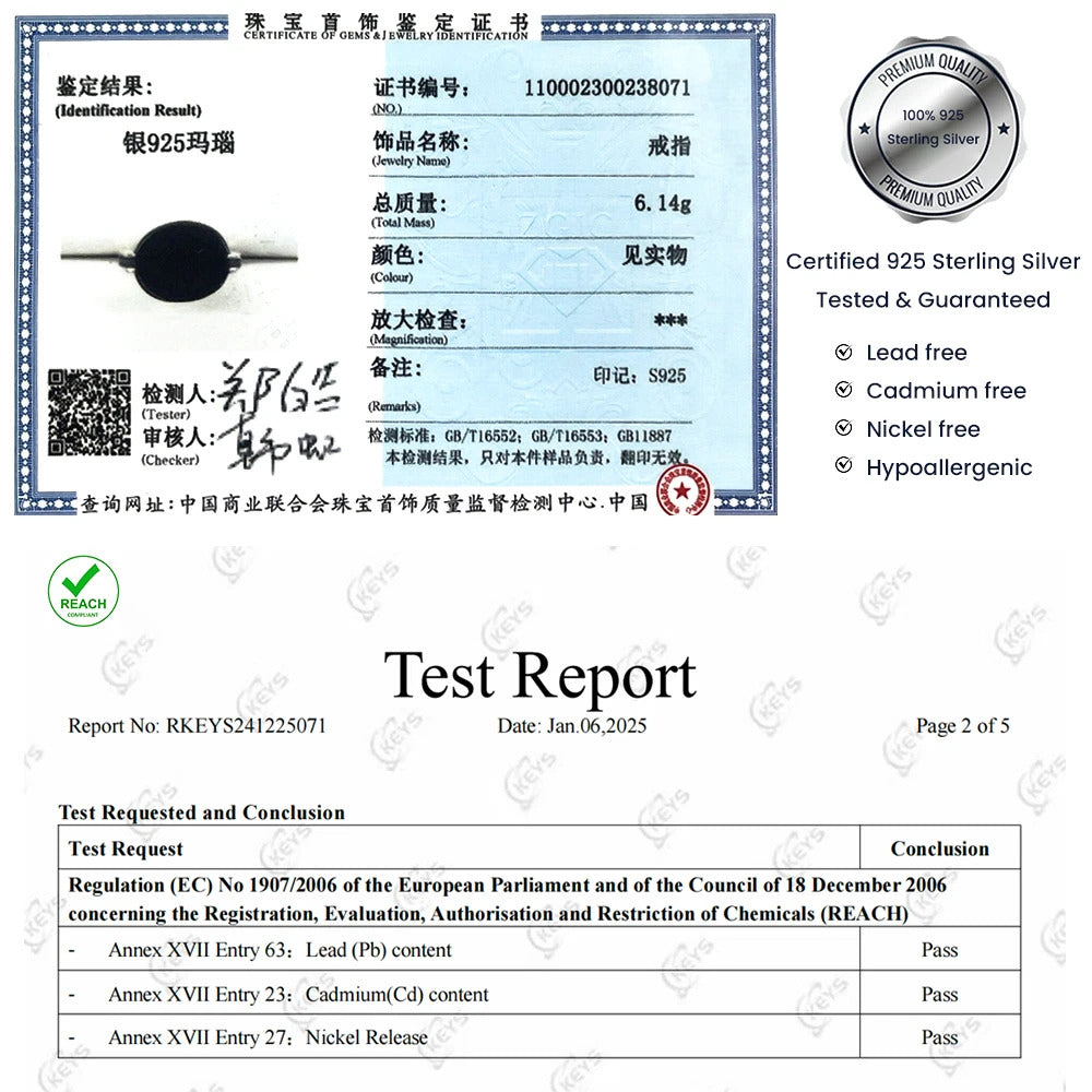 Real Pure 925 Sterling Silver Turkish Ring for Men and Women Prong Setting Black Agate Lapis Lazuli Malachite Jewelry