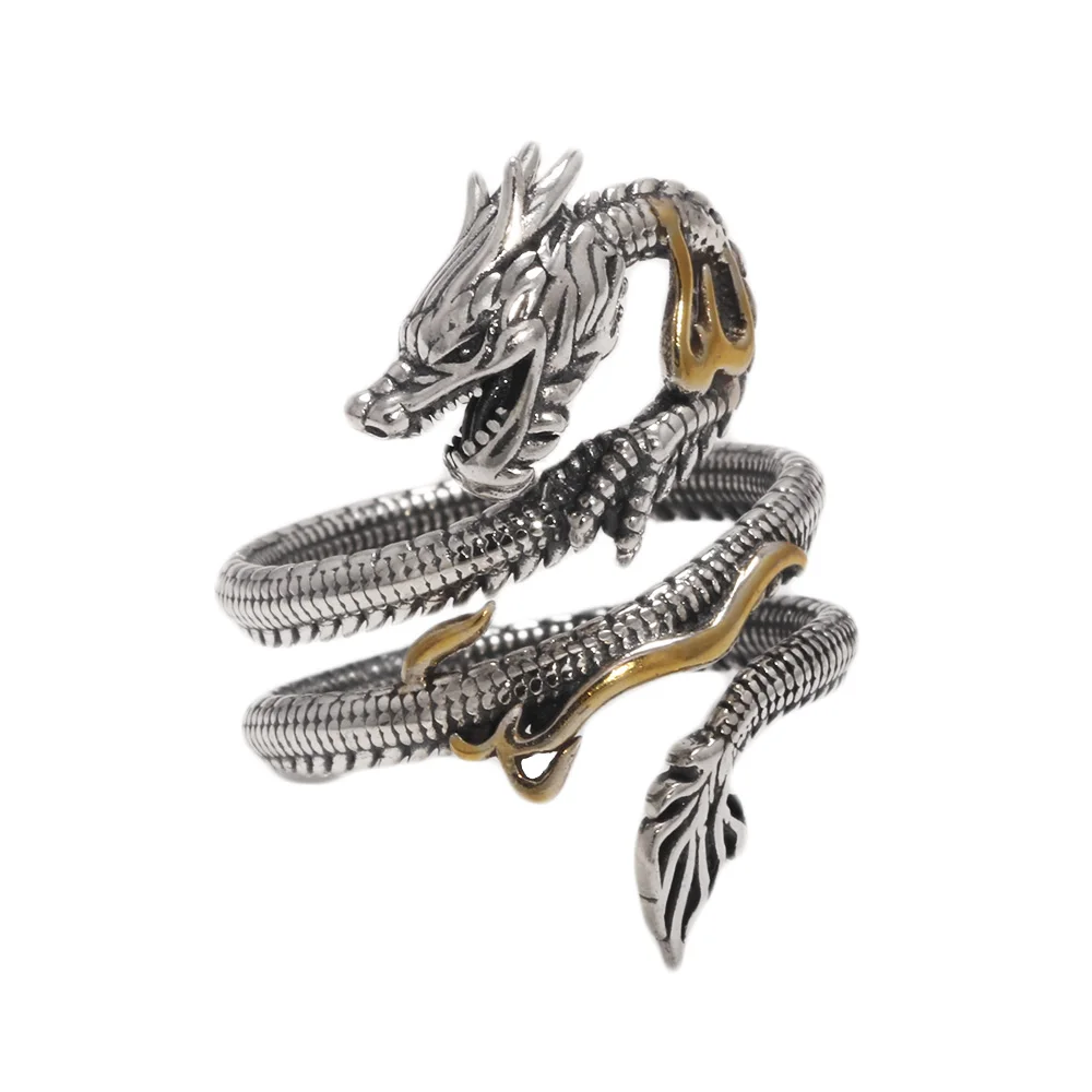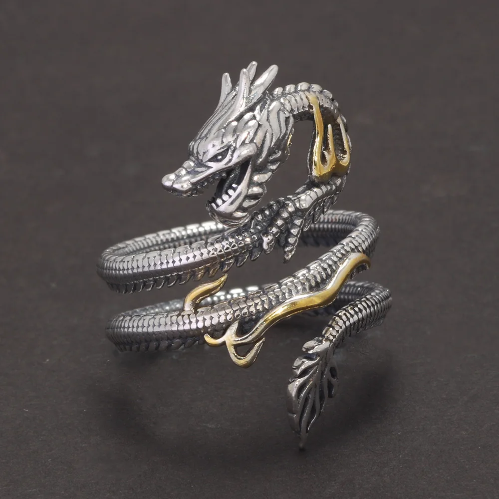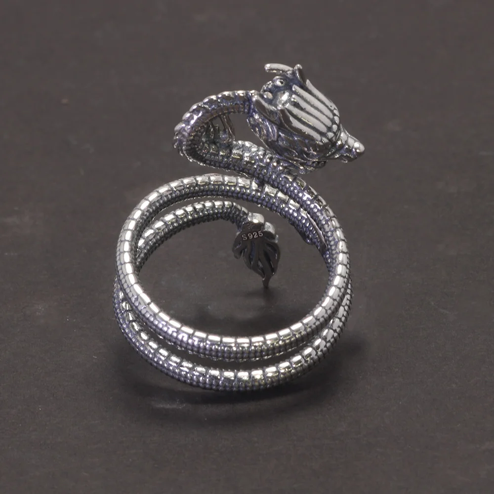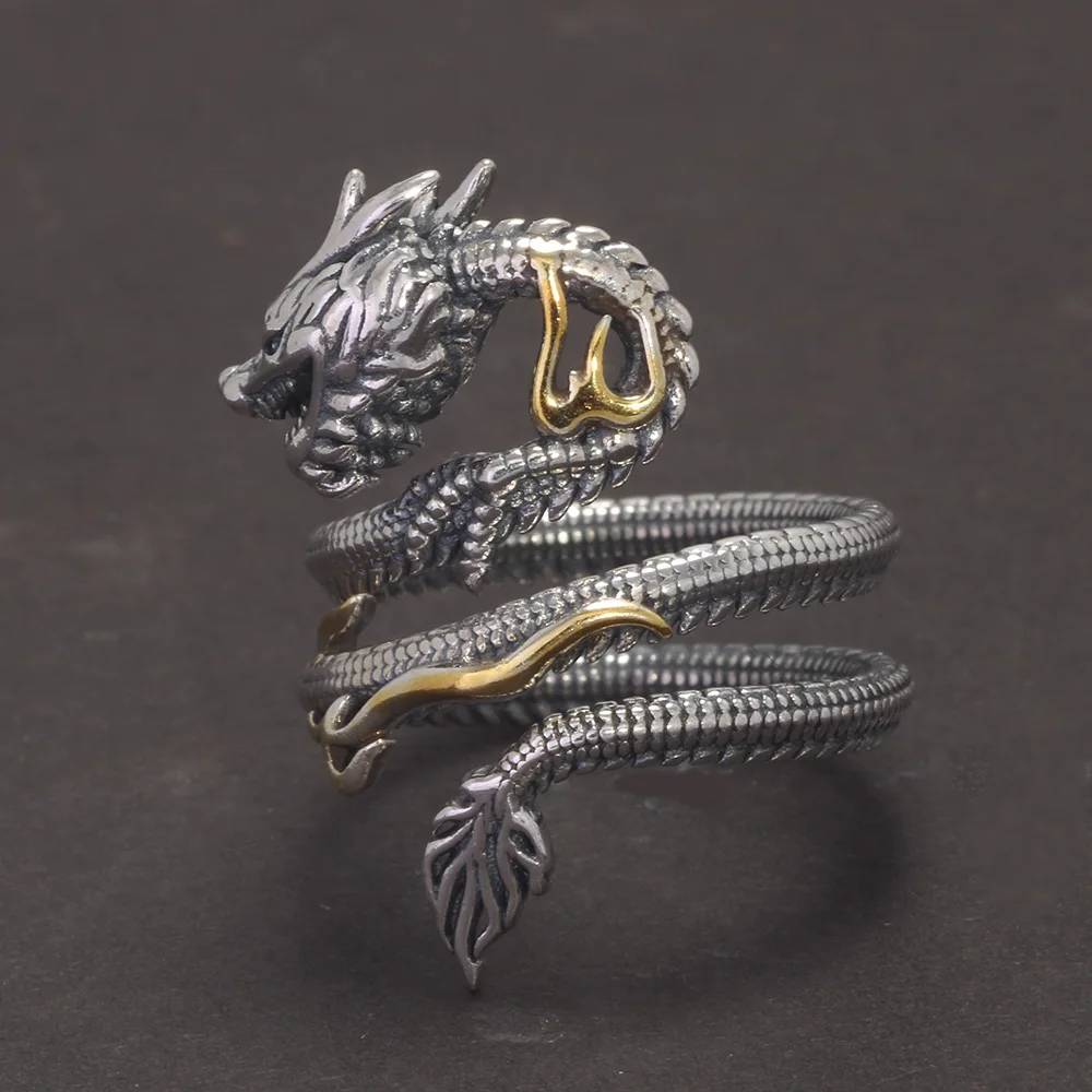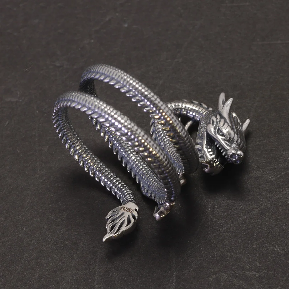 Real Solid 925 Silver Animal Dragon Ring Vintage Men's Opening Size Adjustable Personalized Men's Zodiac Jewelry