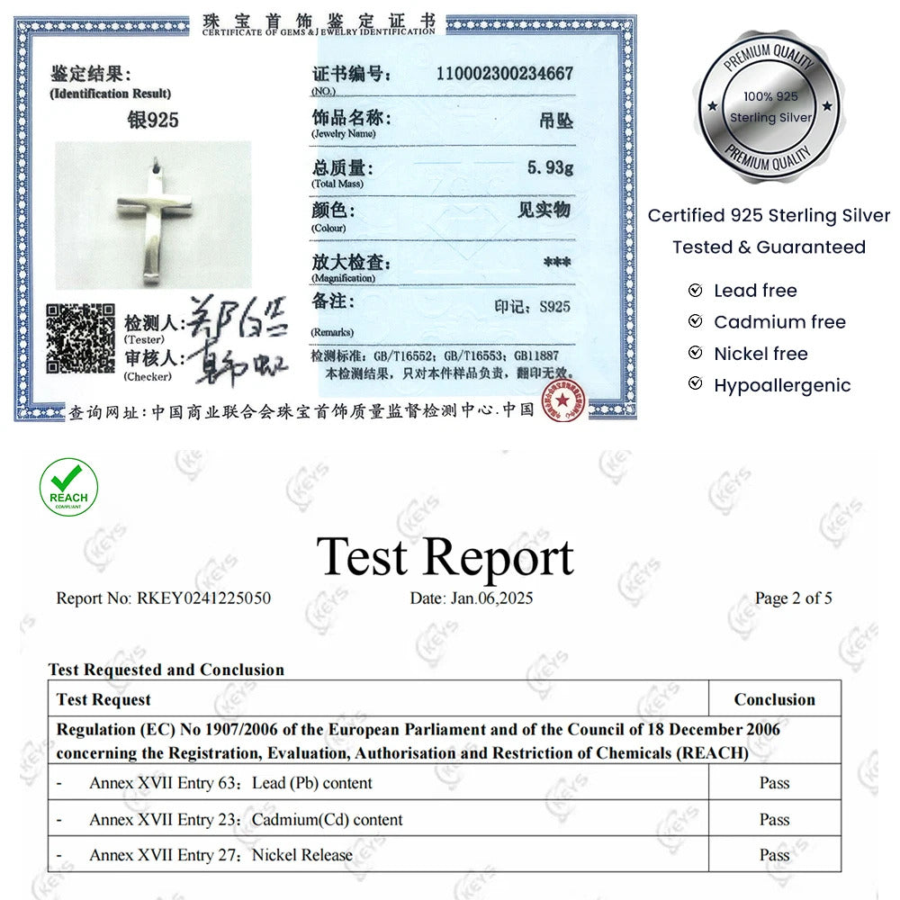 Real Solid 925 Sterling Silver Cross Pendant For Men And Women Smooth High Polishing Simple Design Jesus Christ Jewelry