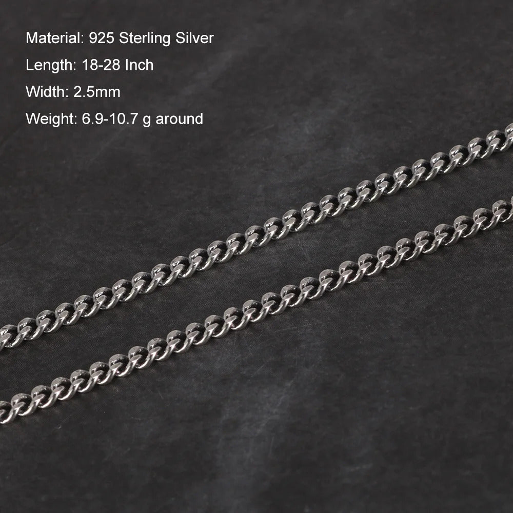 S925 Sterling Silver 2.5mm Whip Rope Men's Necklace Punk Rock Cool Fashion Long Necklace Jewelry