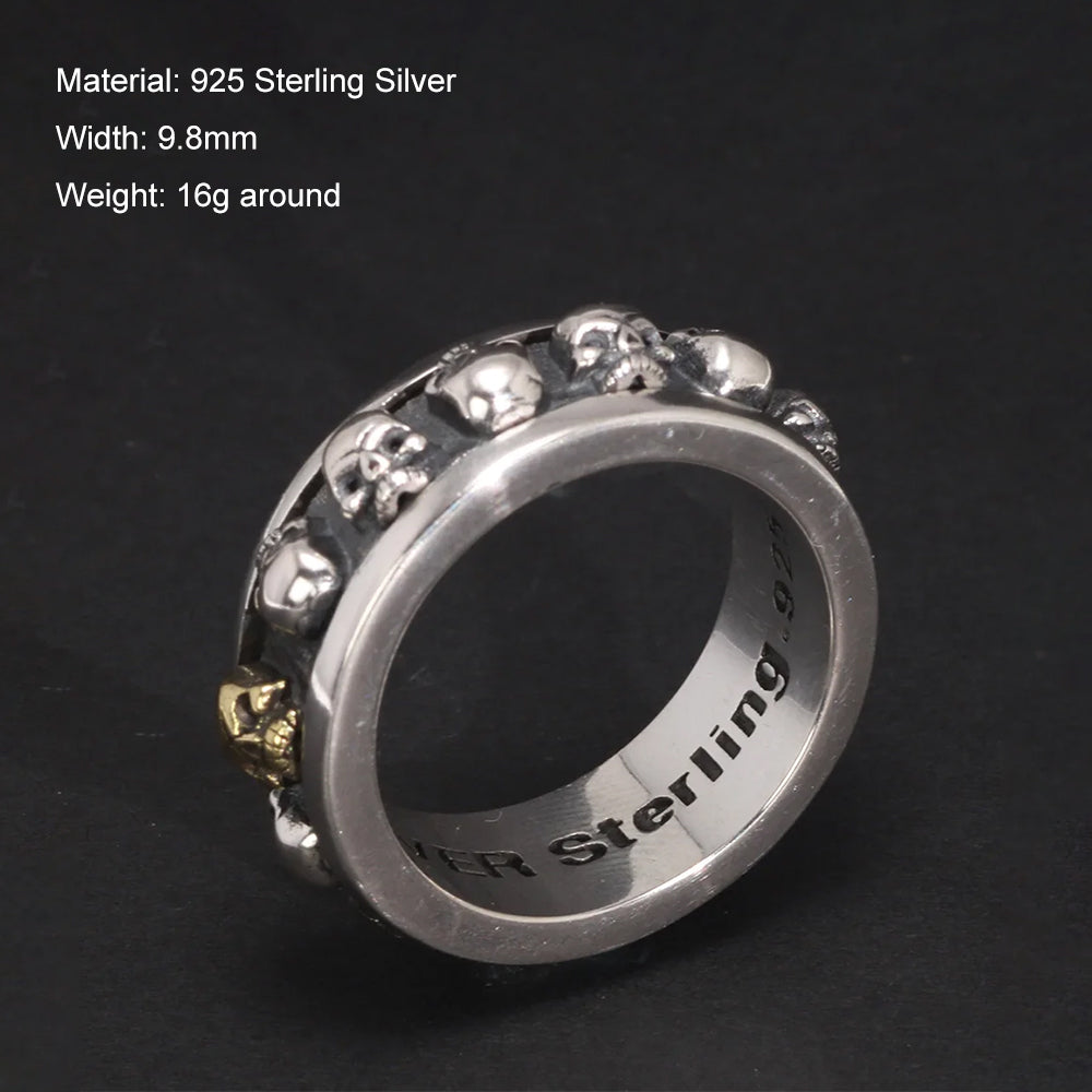 S925 Sterling Silver Rotating Spinner Skull Mens Rings Retro Punk Rock Style Aneis Vintage Fine Jewelry
