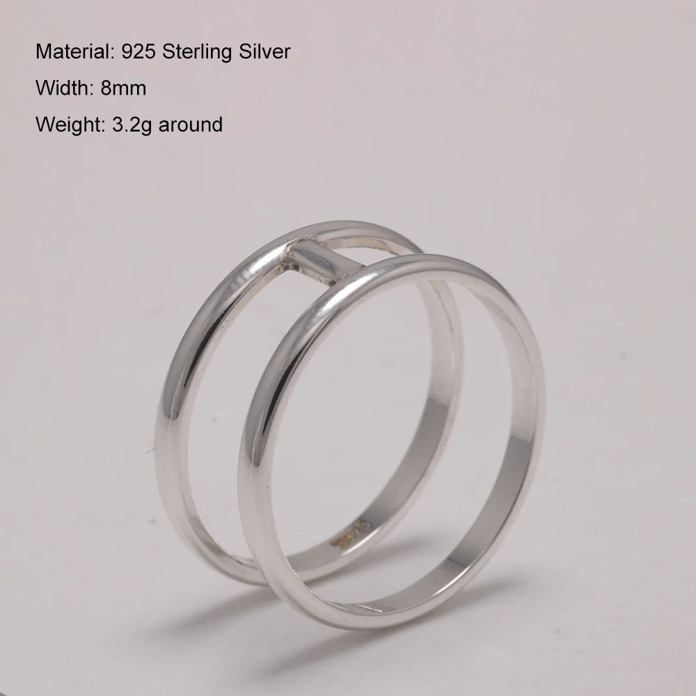 True Pure 925 Sterling Silver Double Layered Women's Plain Ring Wide Ring Minimalist Jewelry